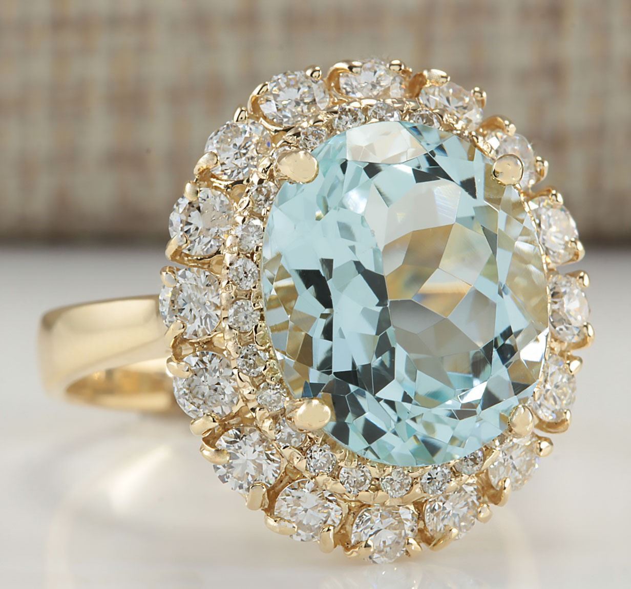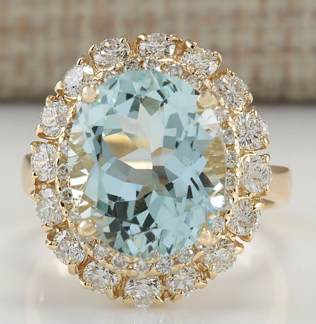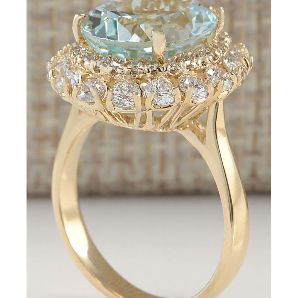 7.53 CTW Natural Aquamarine And Diamond Ring In 18K Solid Yellow Gold