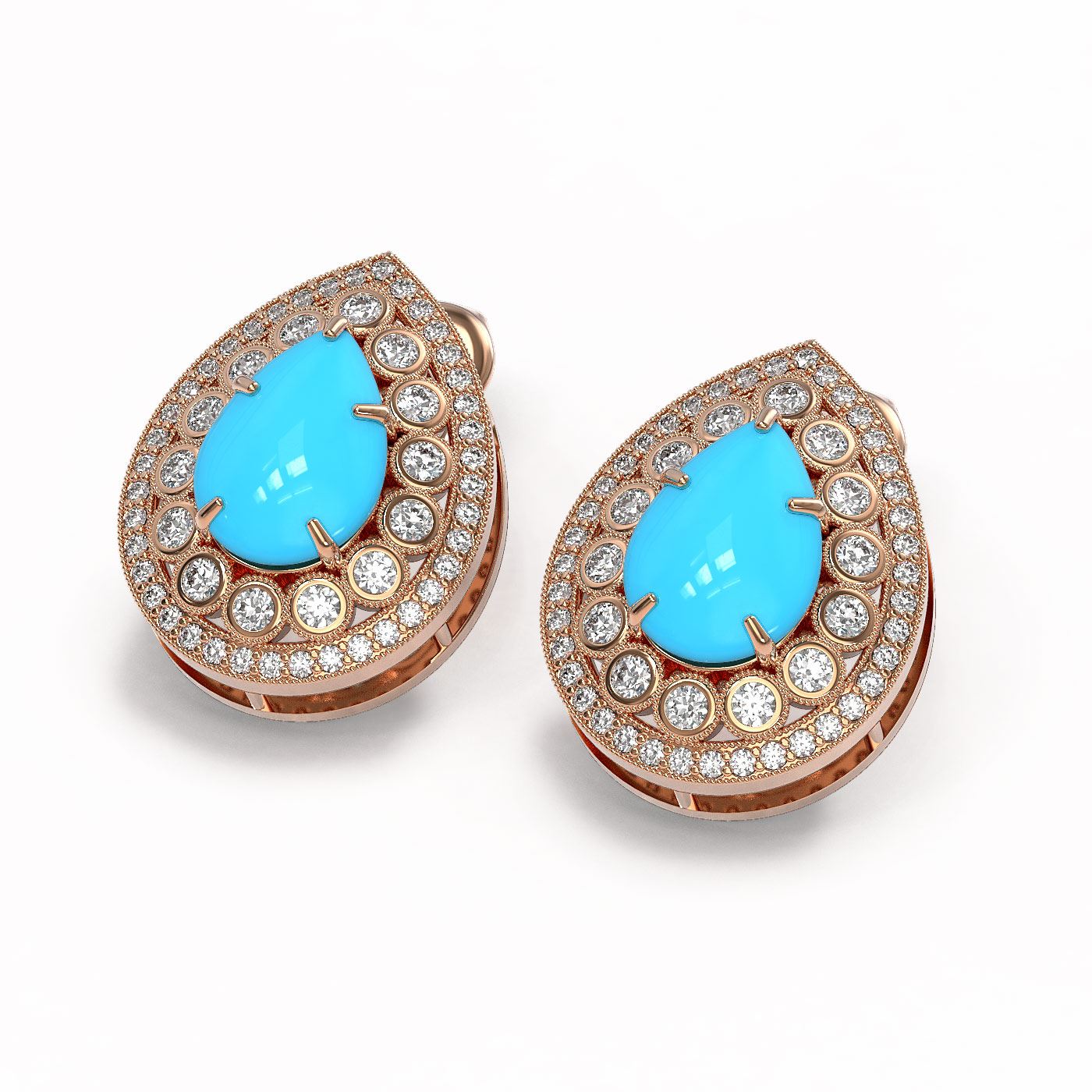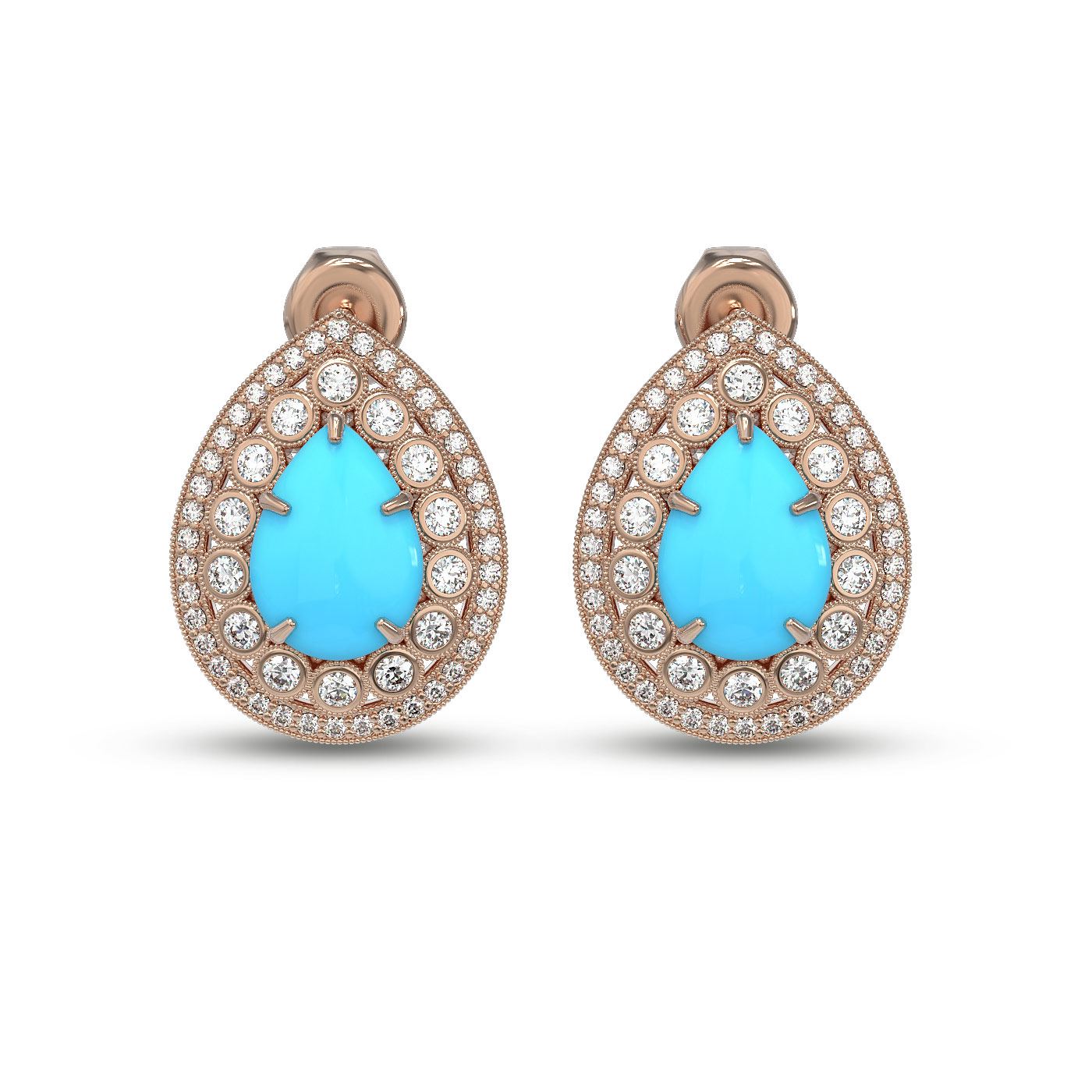 REF-218R2K - SKU: 46153 ---- 7.54 ctw Turquoise & Diamond Victorian Earrings 14K Rose Gold