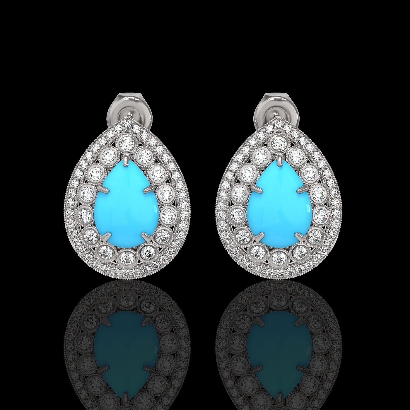 REF-218X2A - SKU: 46152 ---- 7.54 ctw Turquoise & Diamond Victorian Earrings 14K White Gold