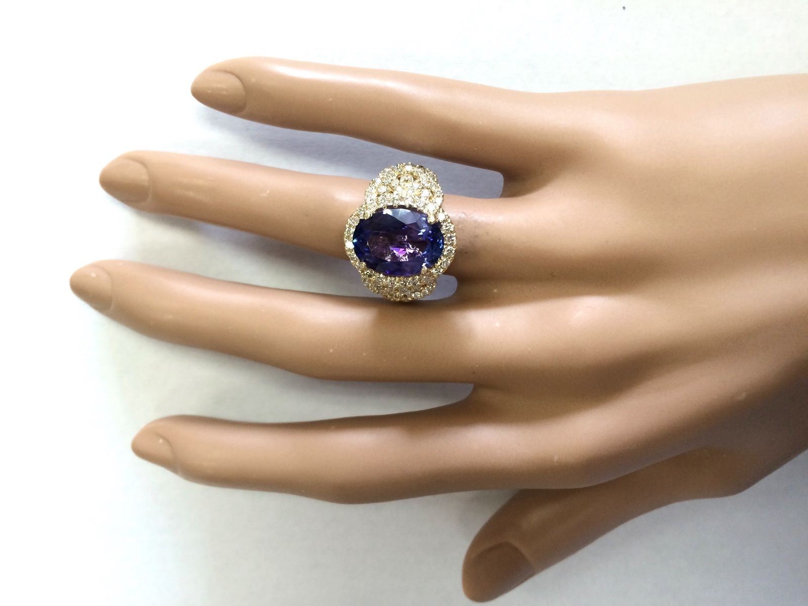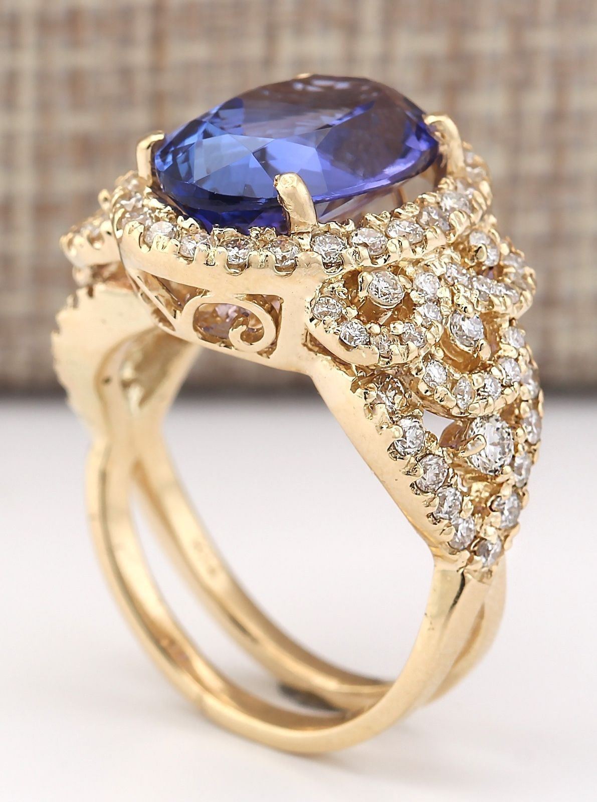 7.55 CTW Natural Tanzanite And Diamond Ring In 14k Yellow Gold