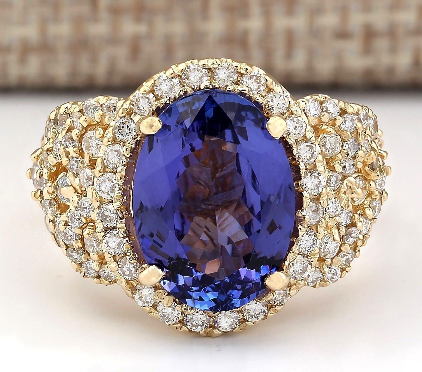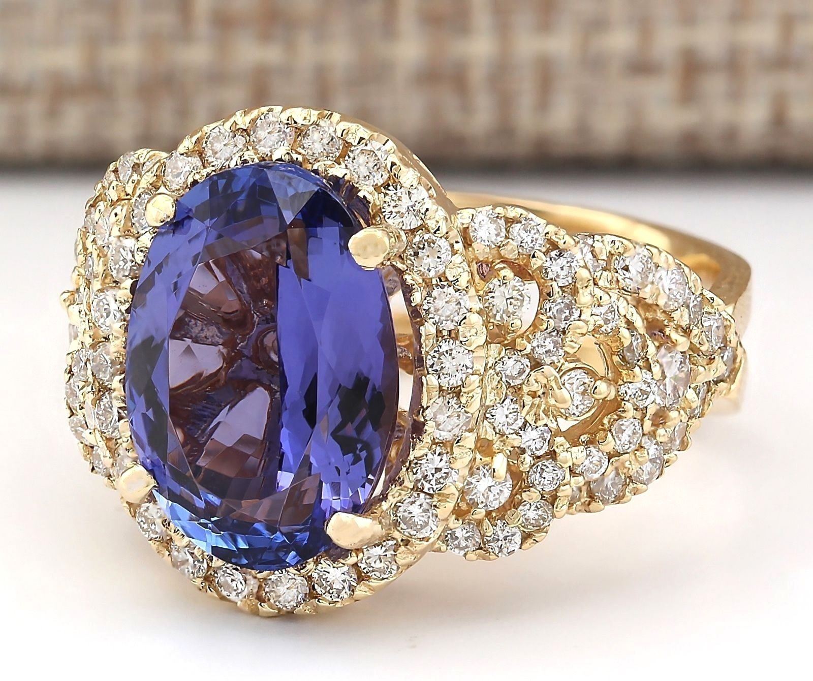 7.55 CTW Natural Tanzanite And Diamond Ring In 18K Yellow Gold