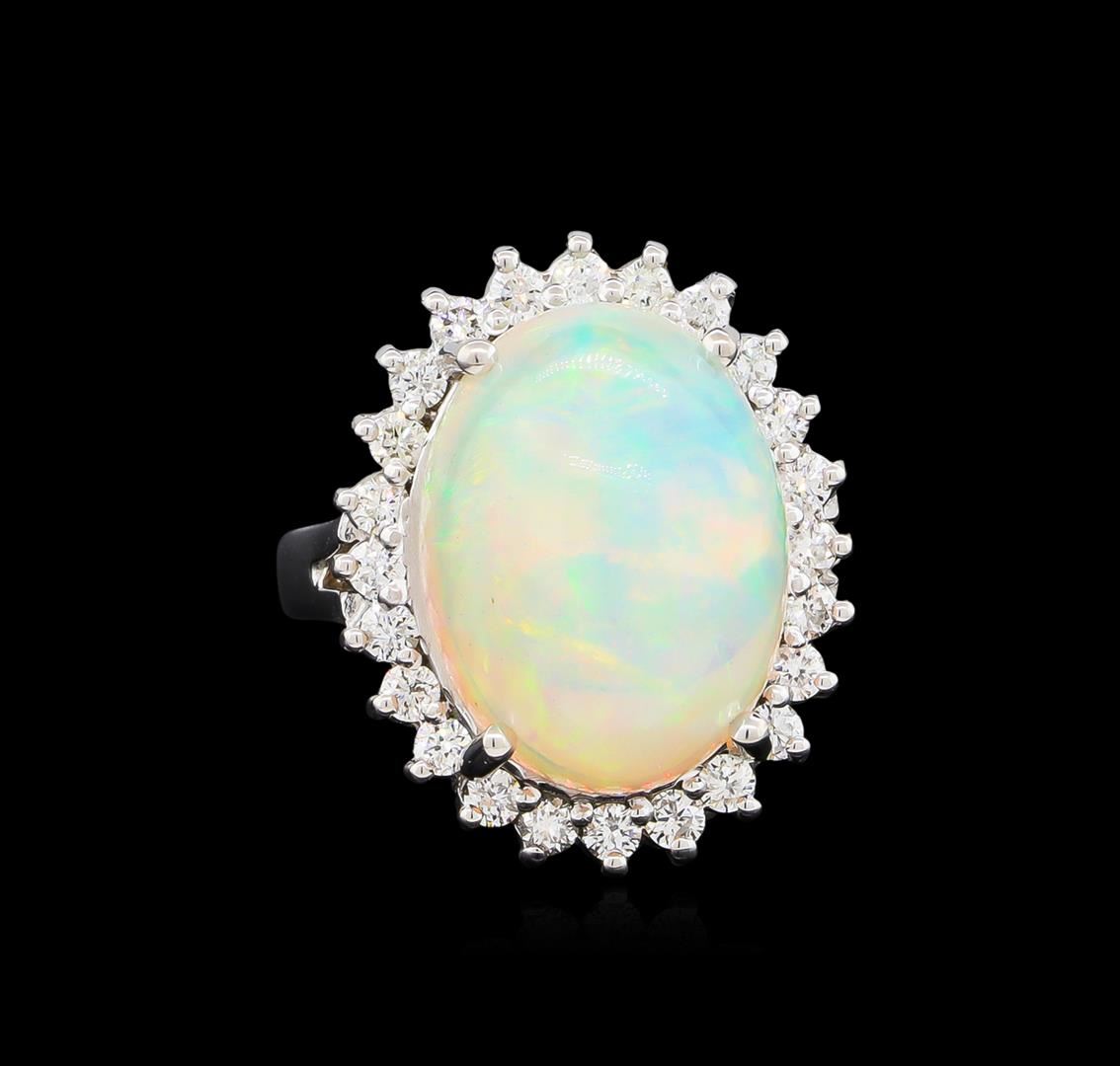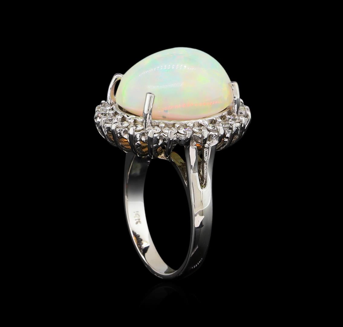 One ring featuring: 14KT white gold weighing 6.45 grams containing one opal with a total weight of 7.55ct and side diamonds with a total weight of 0.68ct.
