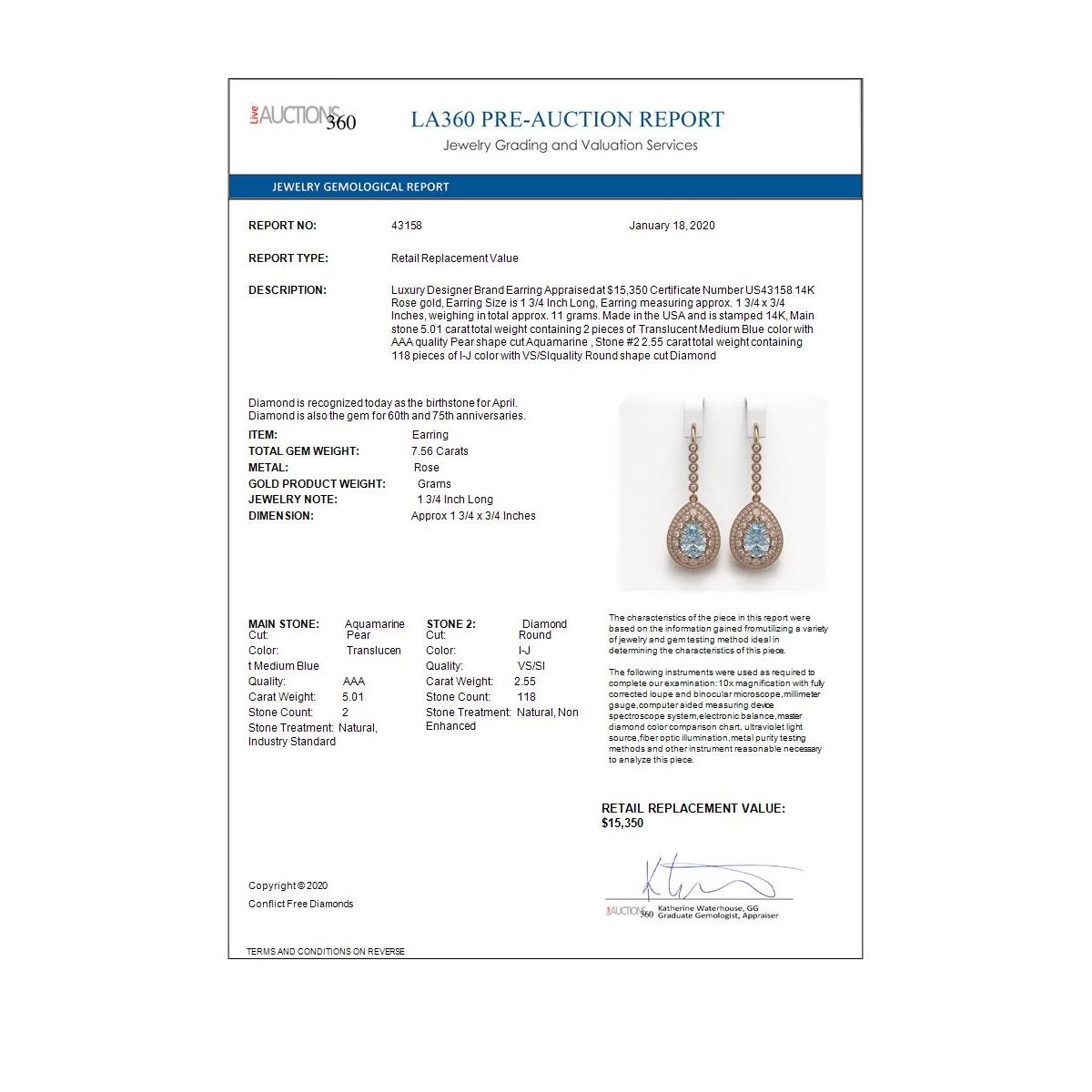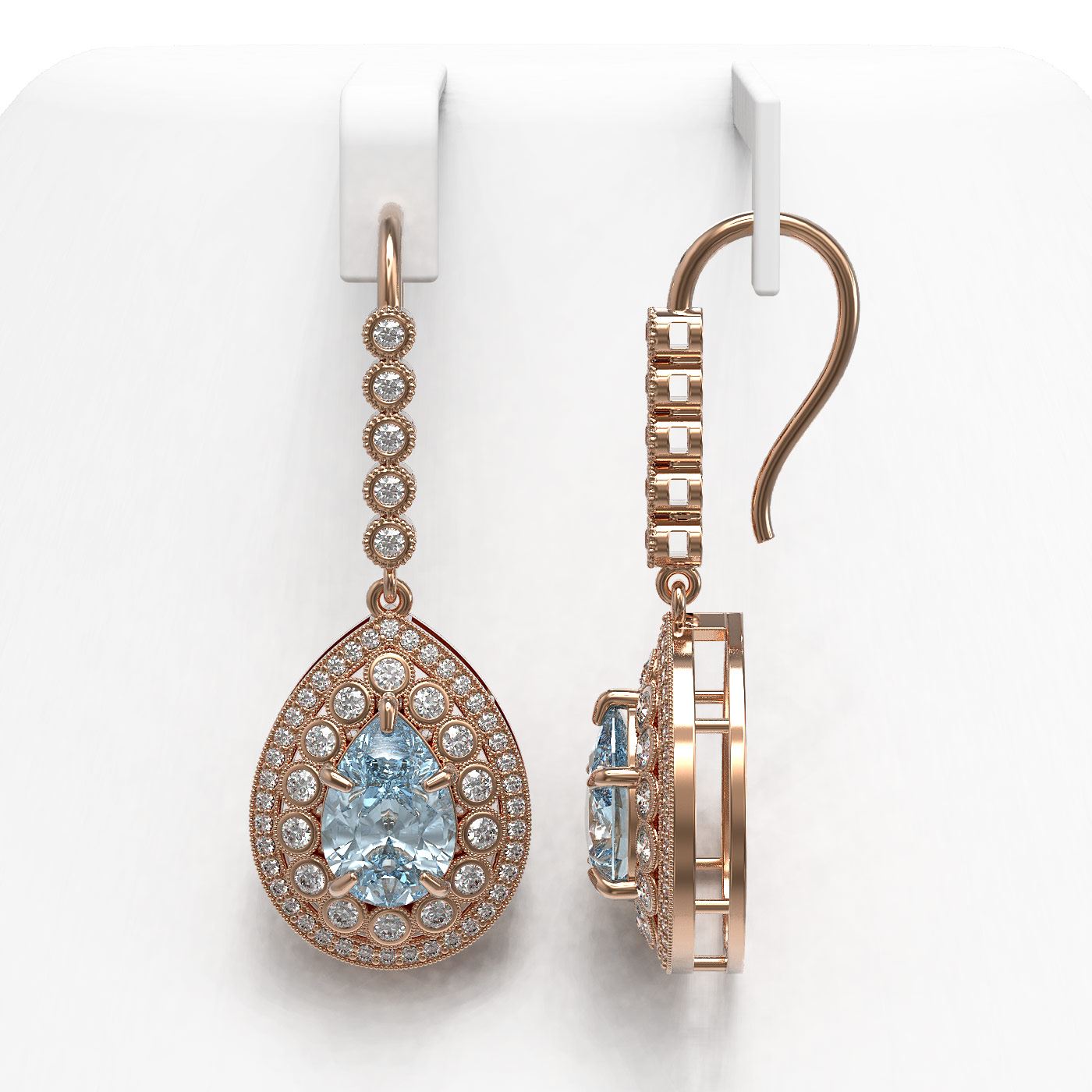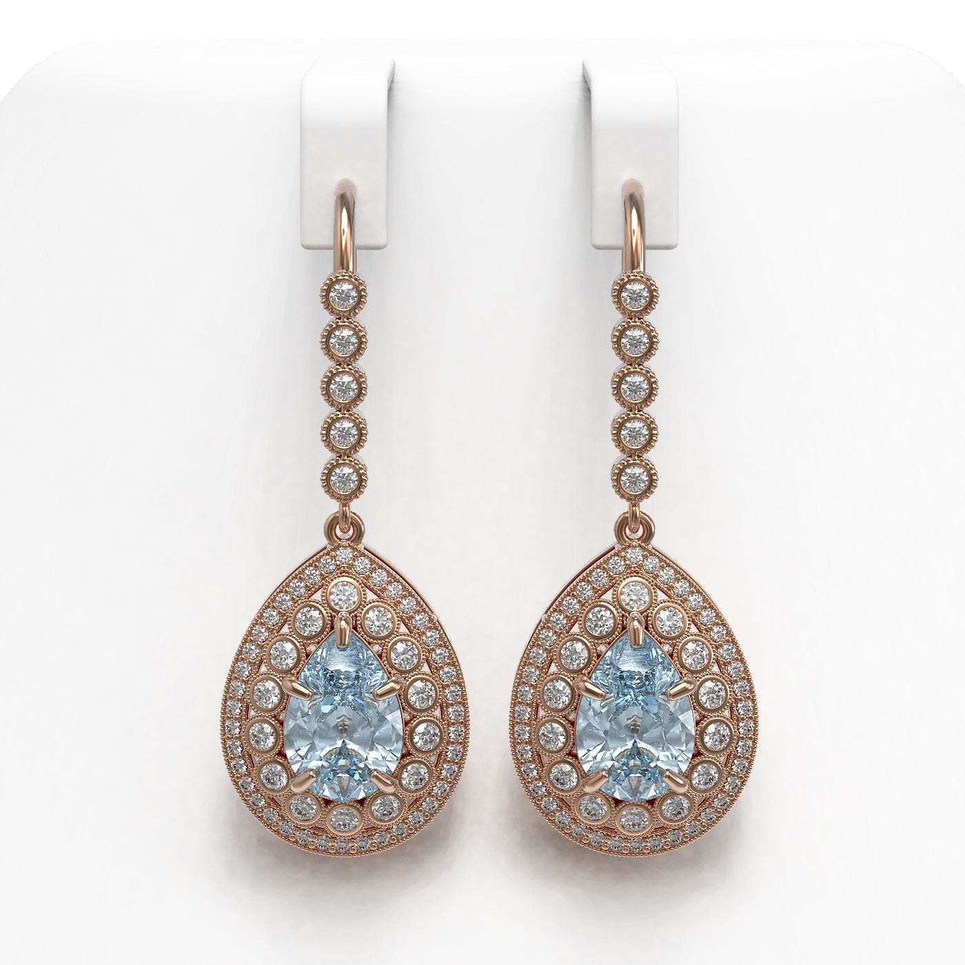 REF-310R4K - SKU: 43158 ---- 7.56 ctw Aquamarine & Diamond Victorian Earrings 14K Rose Gold