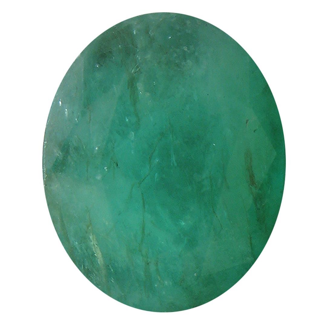 One oval cut natural emerald, measuring 12.00 x 10.50 x 8.25mm, exact weight 7.58ct., clarity is heavily included, type III, medium dark, very slightly grayish, very slightly bluish green color, (GIA vslbG 6/3), cut is good. Westfield Appraised at $3,475.00.