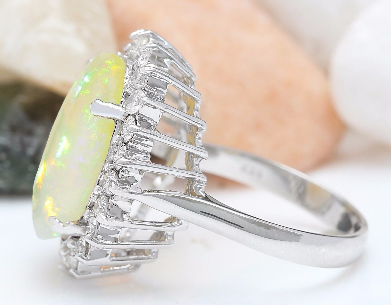 7.59 Carat Natural Opal 14K Solid White Gold Diamond Ring