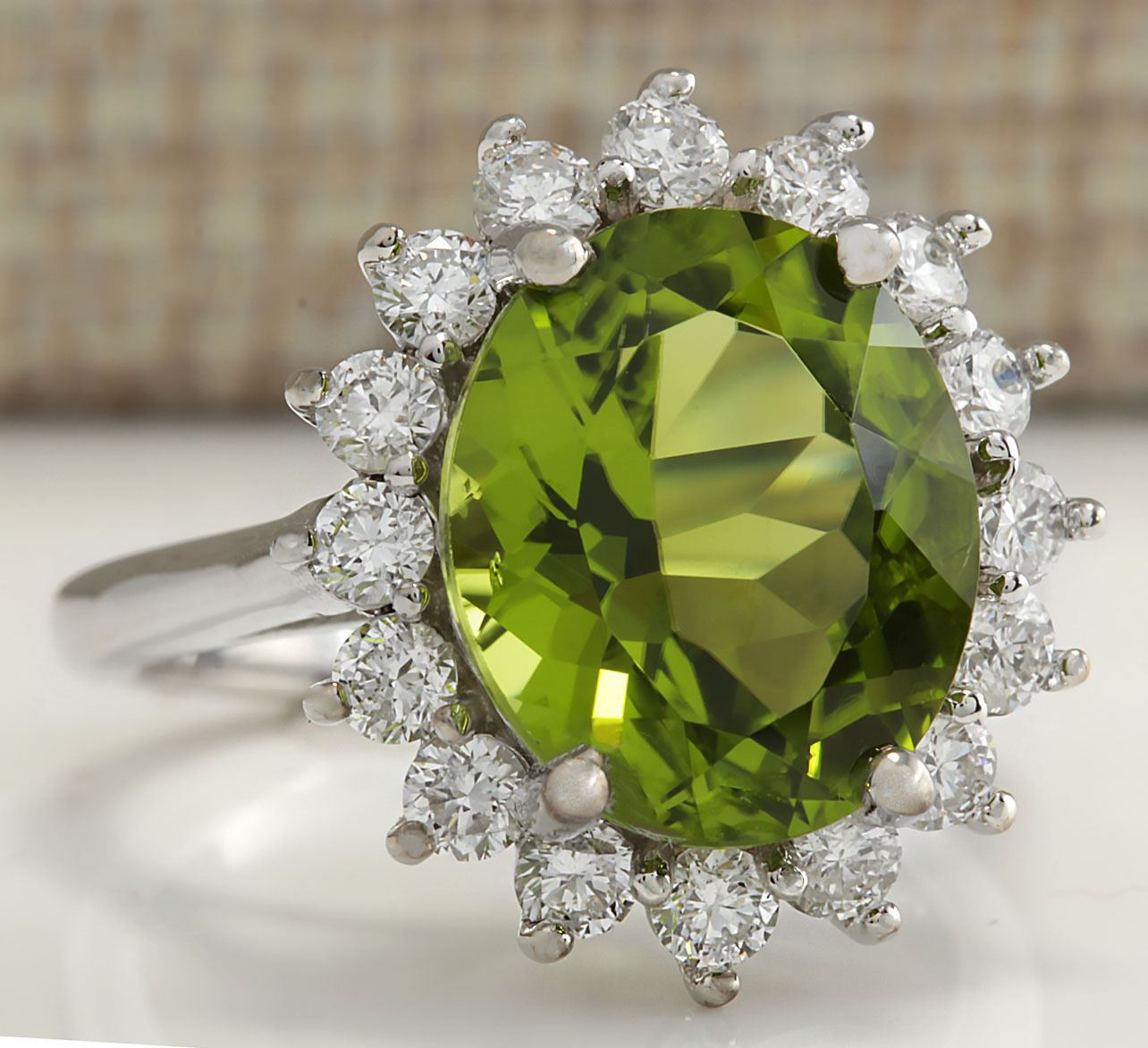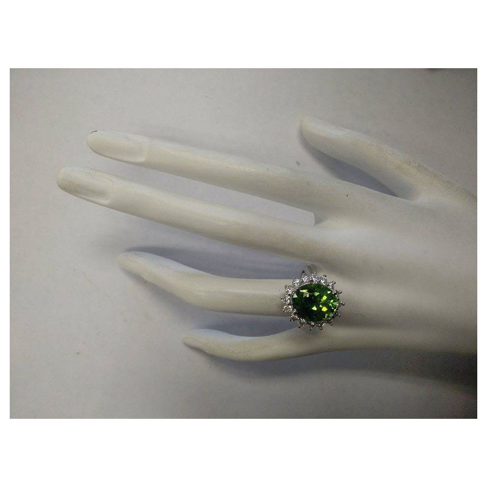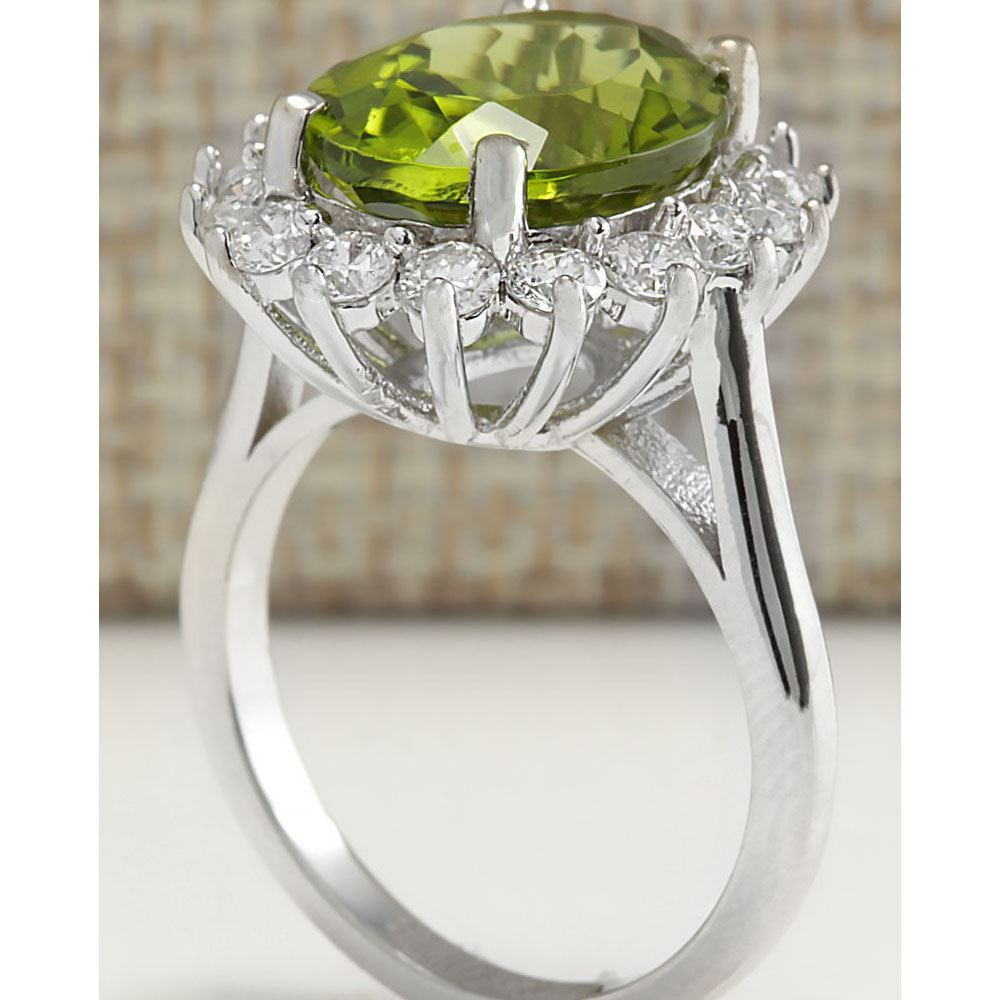7.59 CTW Natural Peridot And Diamond Ring 14K Solid White Gold