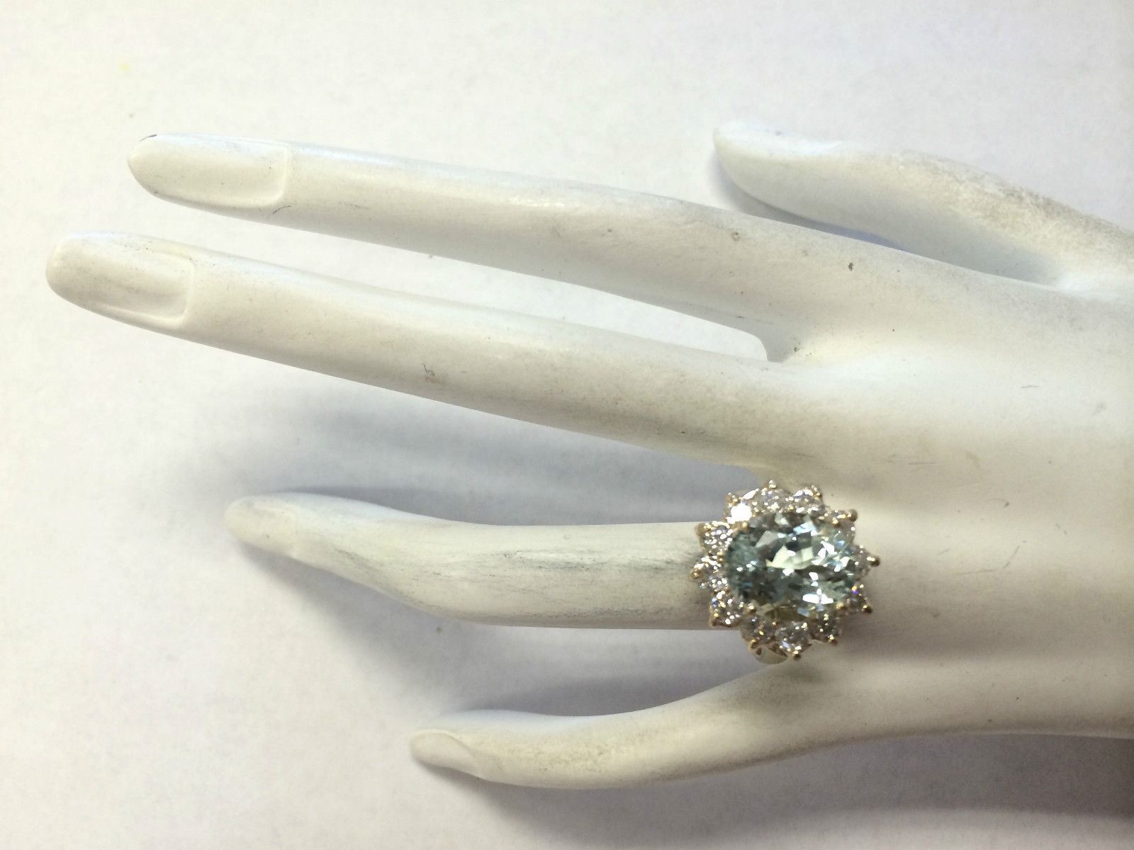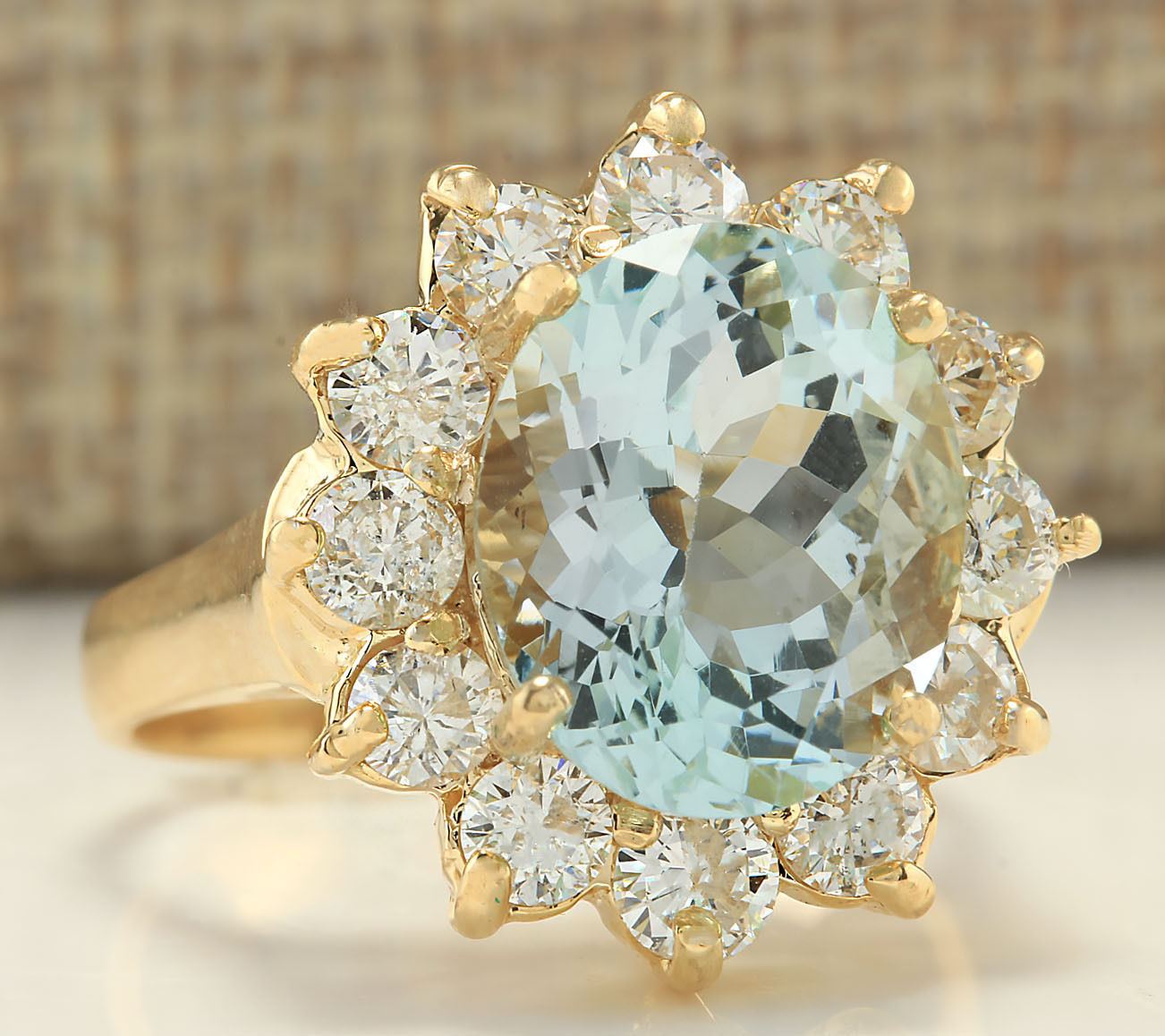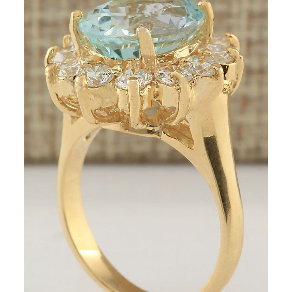 7.60 CTW Natural Aquamarine And Diamond Ring In 14K Yellow Gold