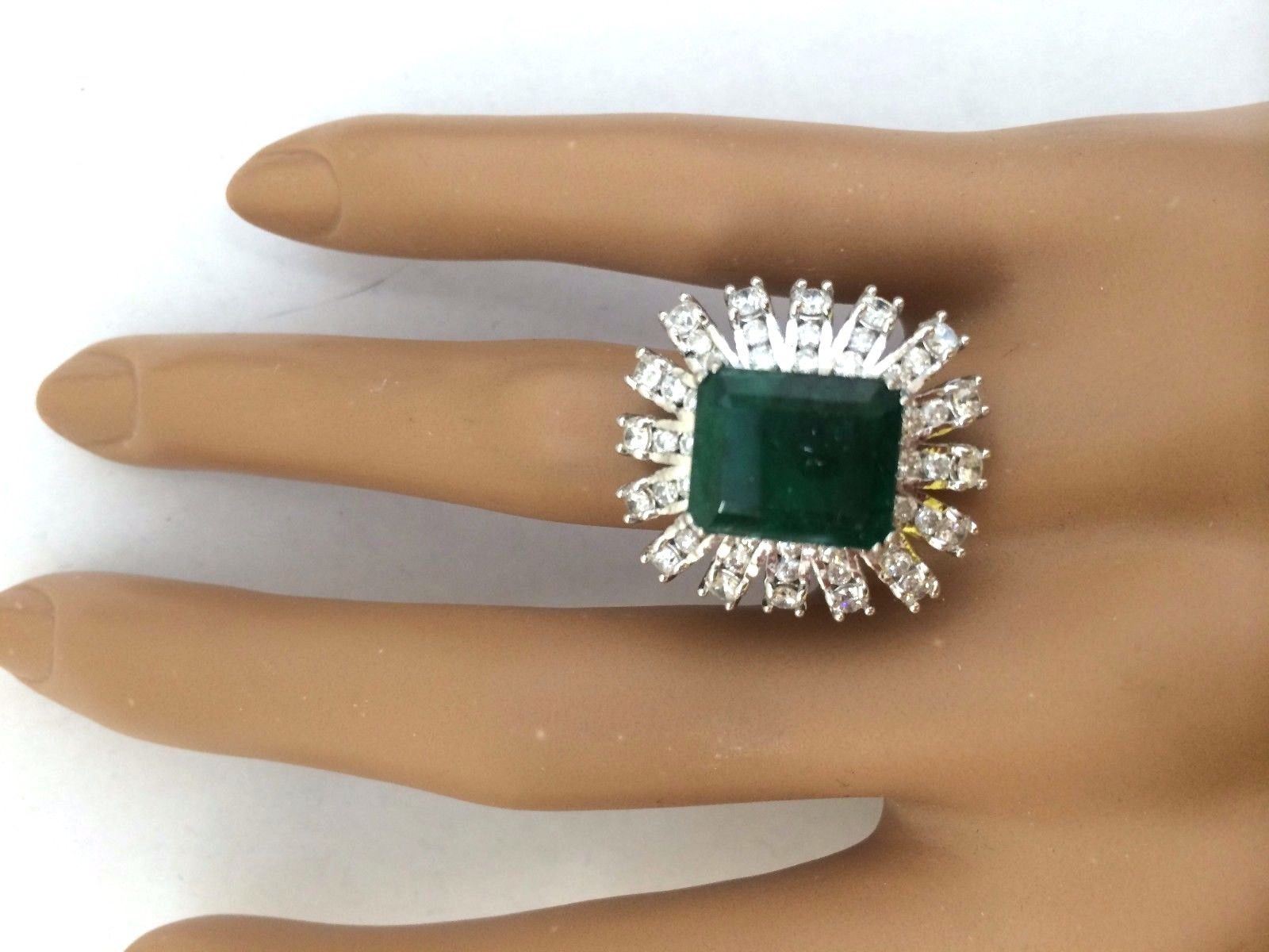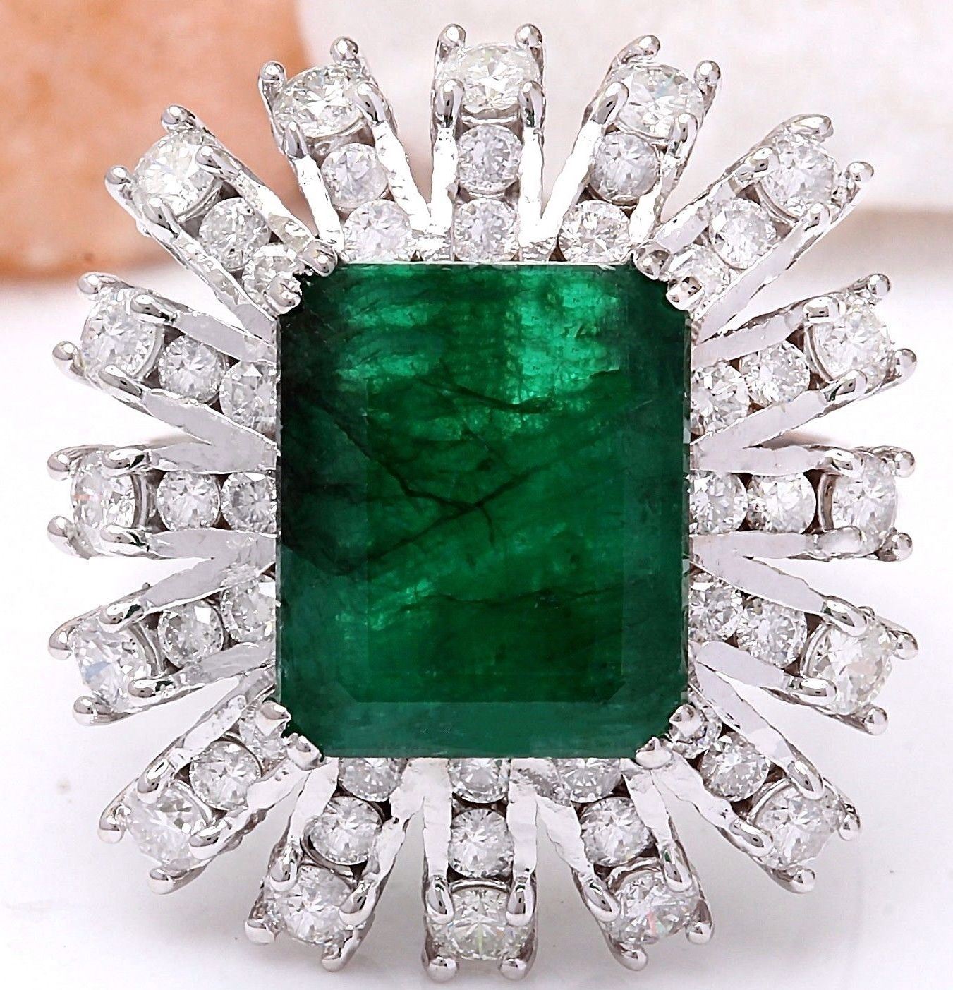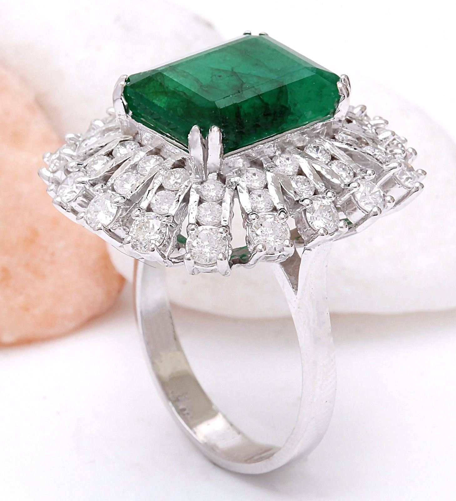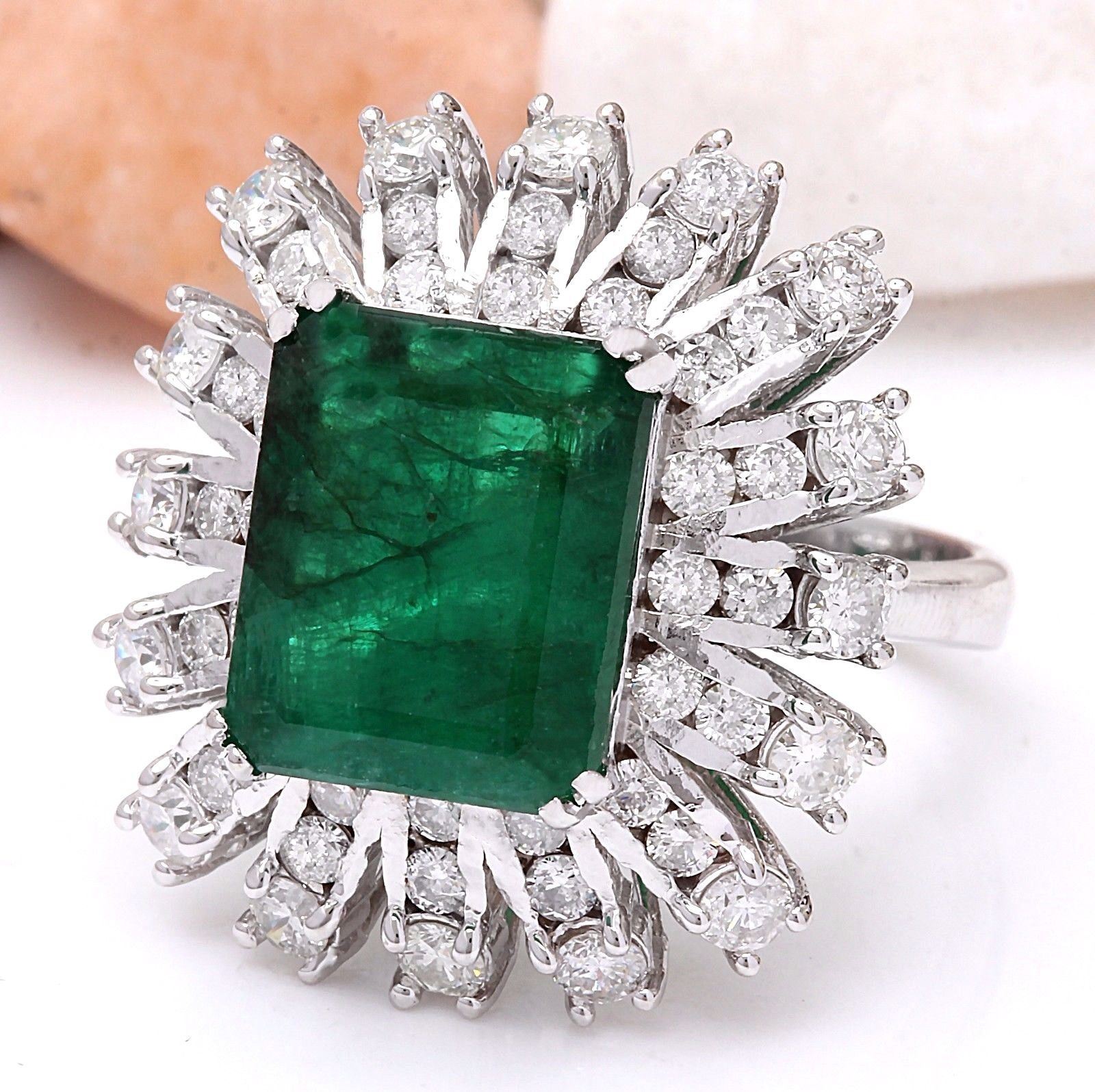 7.60 Carat Natural Emerald 14K Solid White Gold Diamond Ring