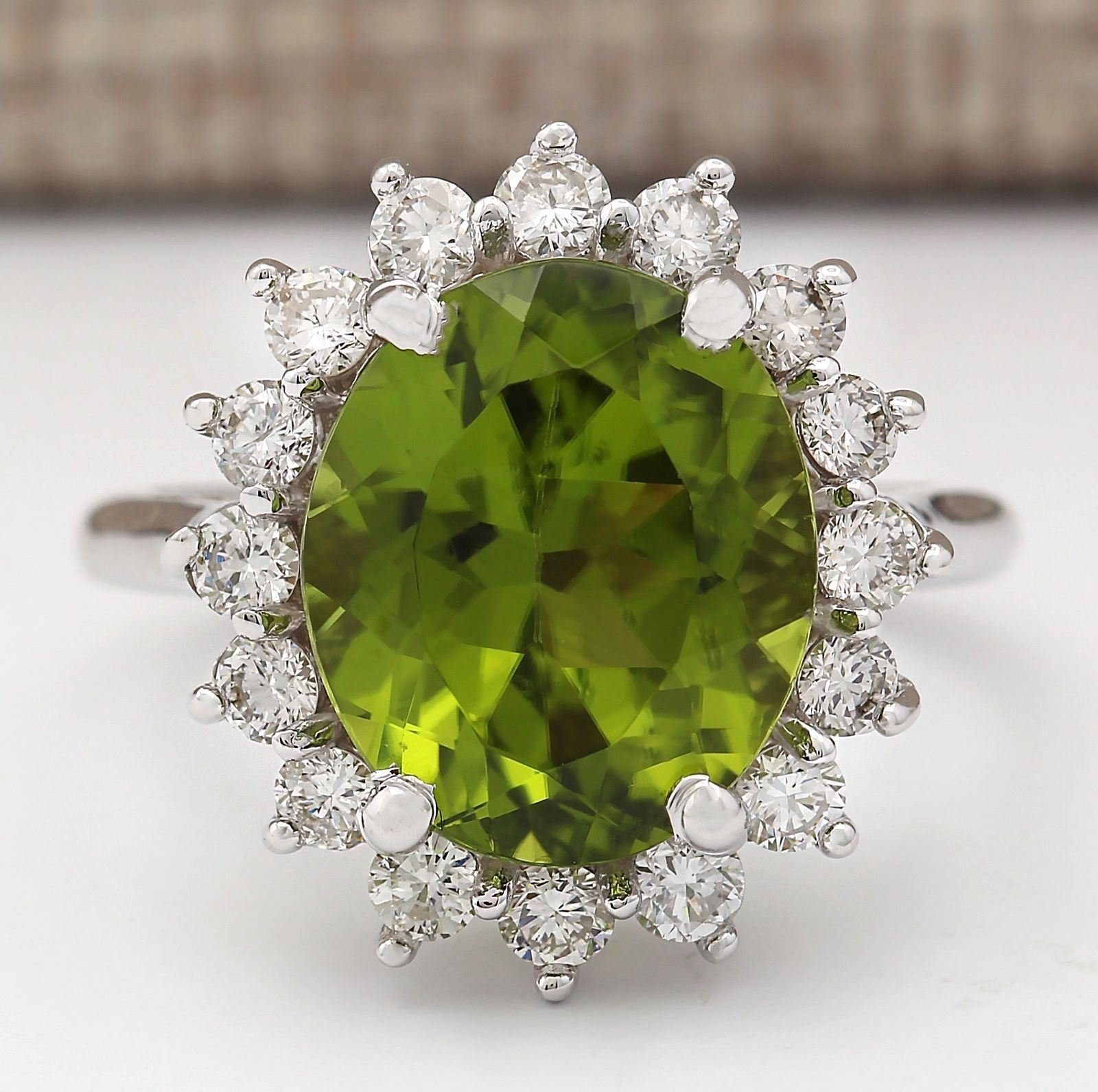 7.60 CTW Natural Peridot And Diamond Ring In 14k White Gold