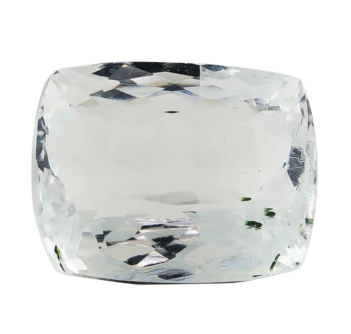 One natural rectangle cushion cut aquamarine with an exact weight of 7.60ct., clarity is moderately included, slightly grayish greenish blue. Gemological Appraisals Services estimates the retail value at $2280 GAS Appraised.