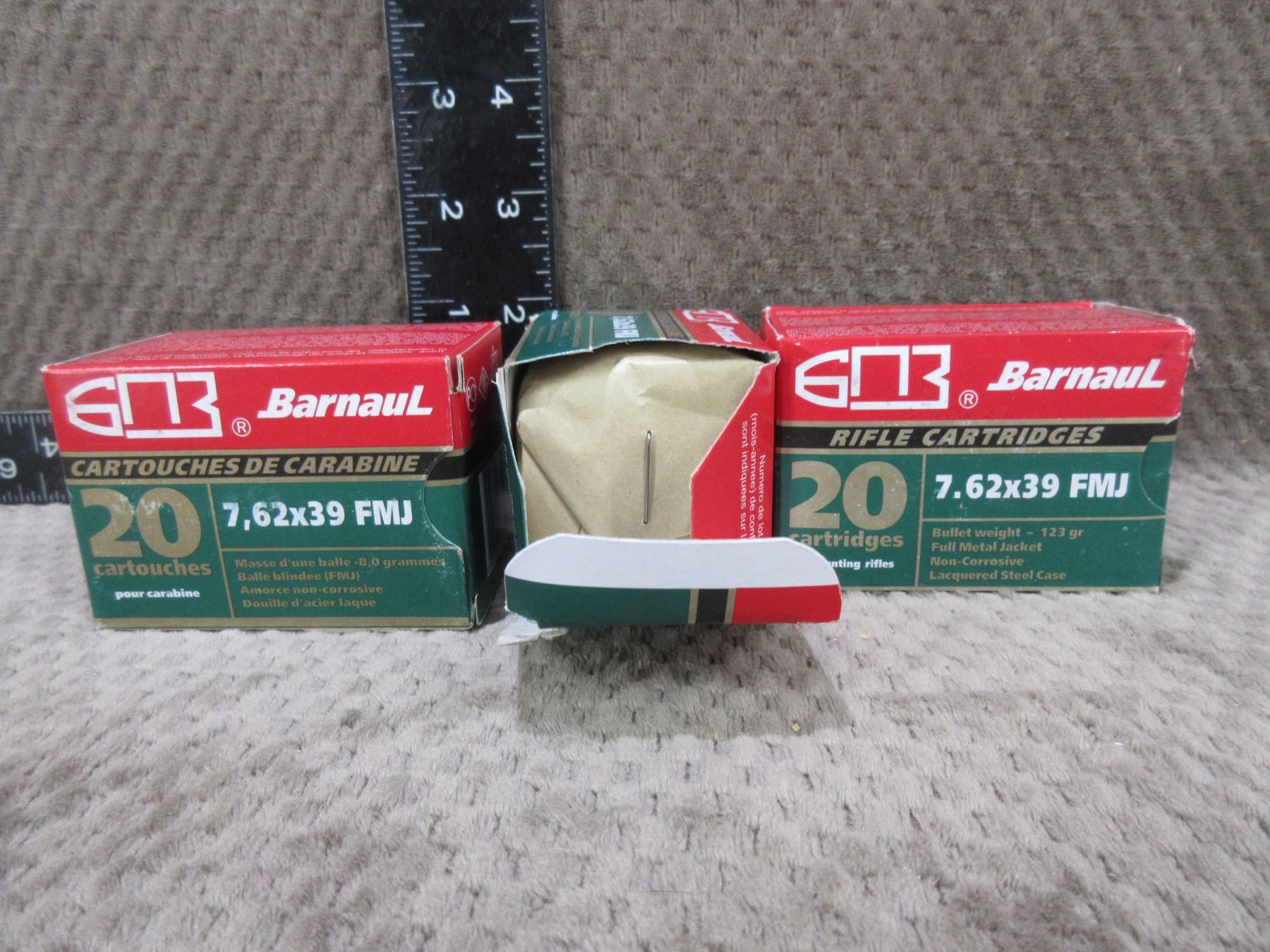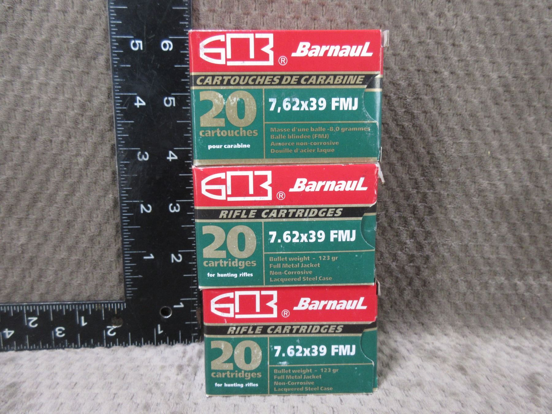 7.62 x 39 123gr FMJ Barnaul Cartridges - 3 Sealed Boxes of 20