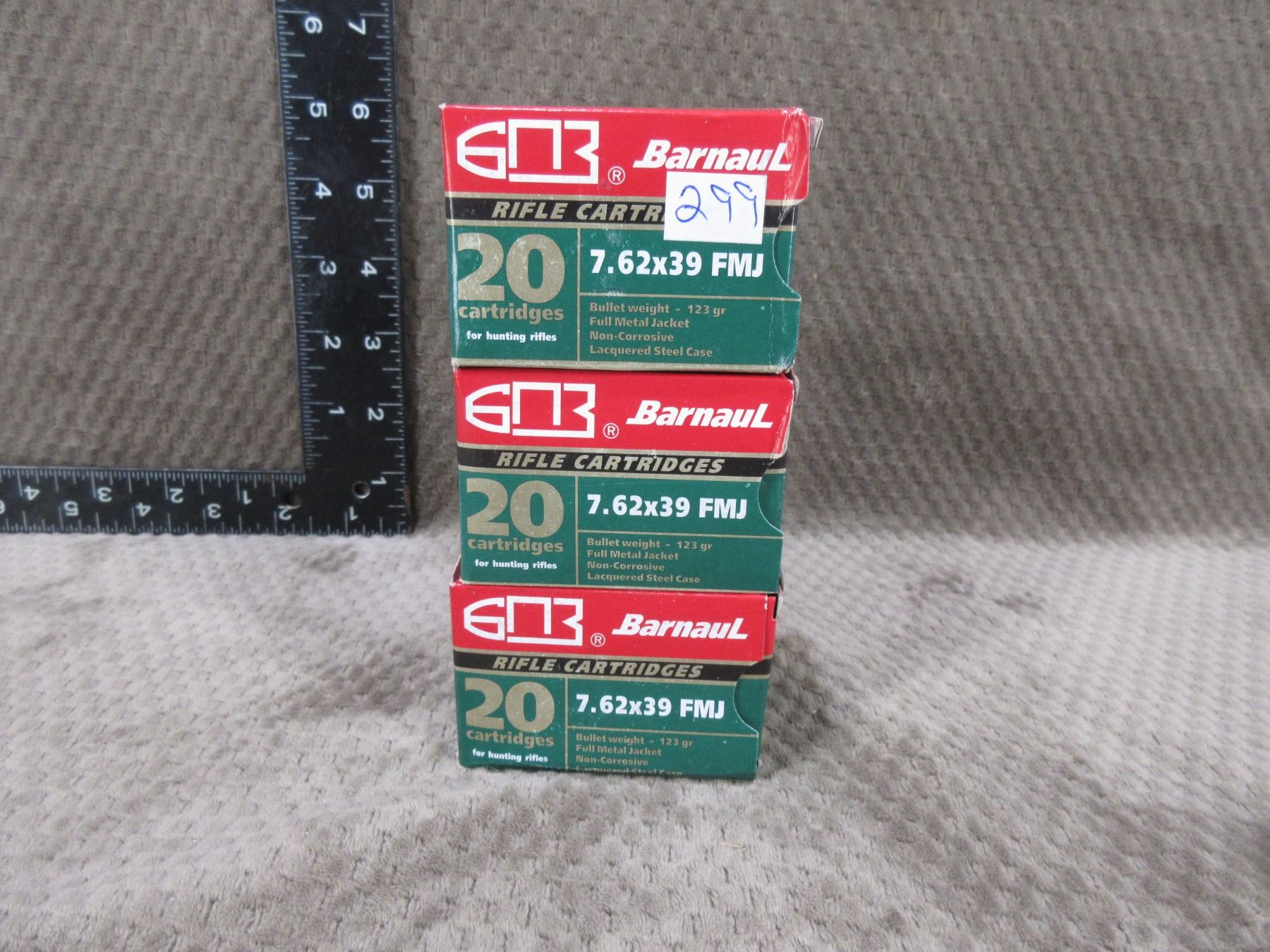 7.62 x 39 123gr FMJ Barnaul Cartridges - 3 Sealed Boxes of 20