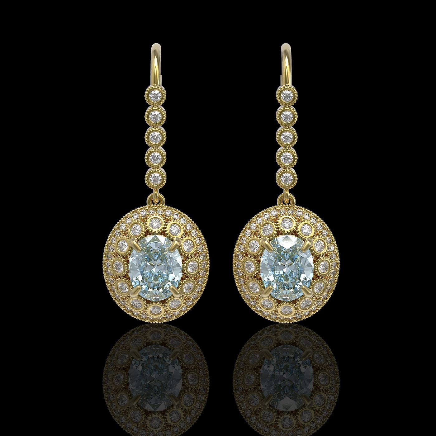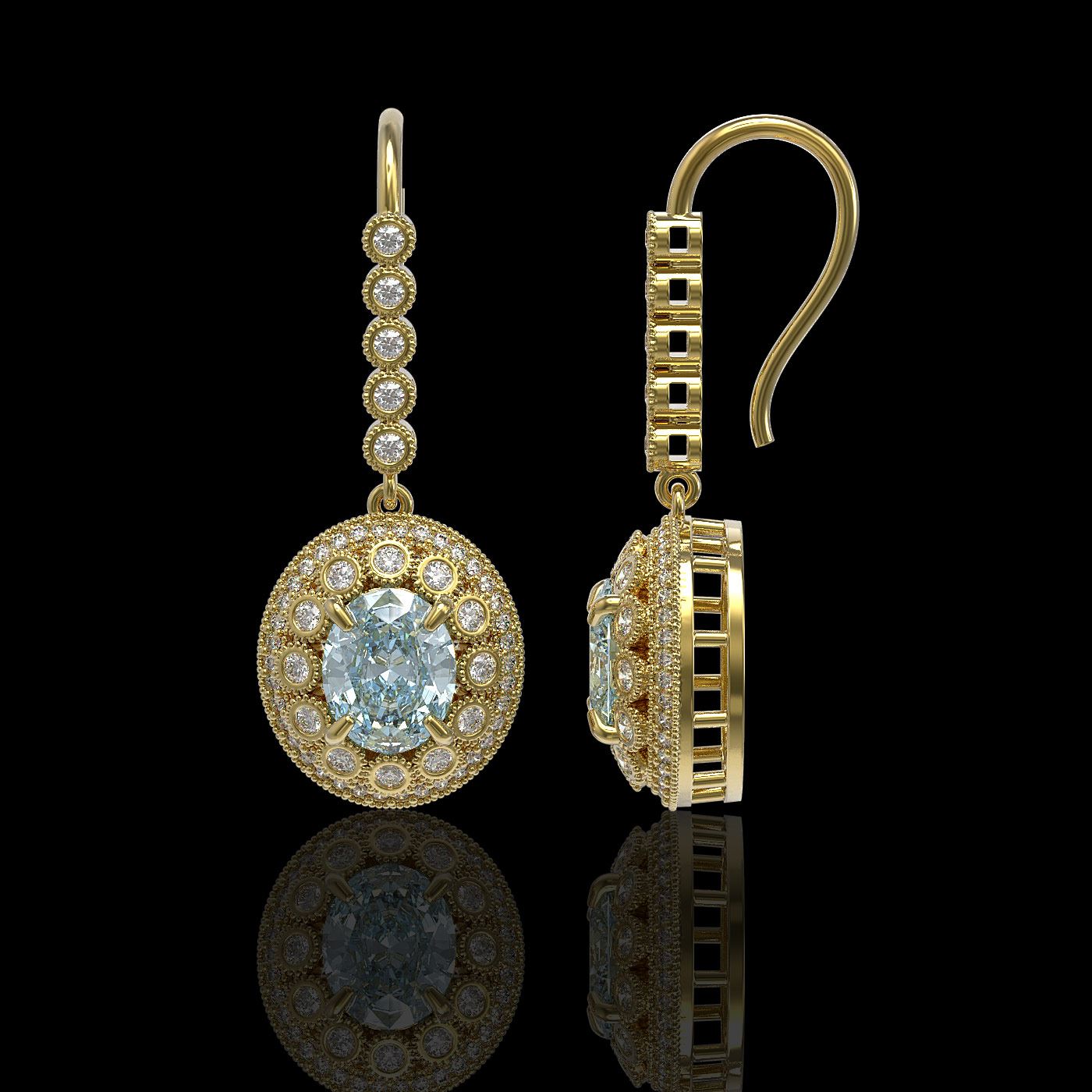 REF-250R5K - SKU: 43615 ---- 7.65 ctw Aquamarine & Diamond Victorian Earrings 14K Yellow Gold