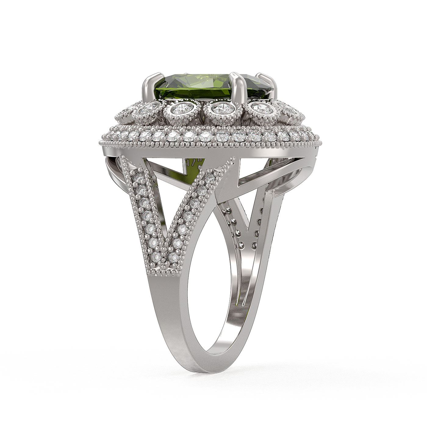 REF-215Y3X - SKU: 43757 ---- 7.66 ctw Certified Tourmaline & Diamond Victorian Ring 14K White Gold