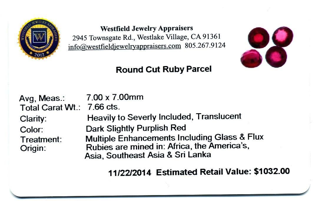 7.66cts. Round Cut Ruby Parcel Westfield Appraised at $1,032.00.