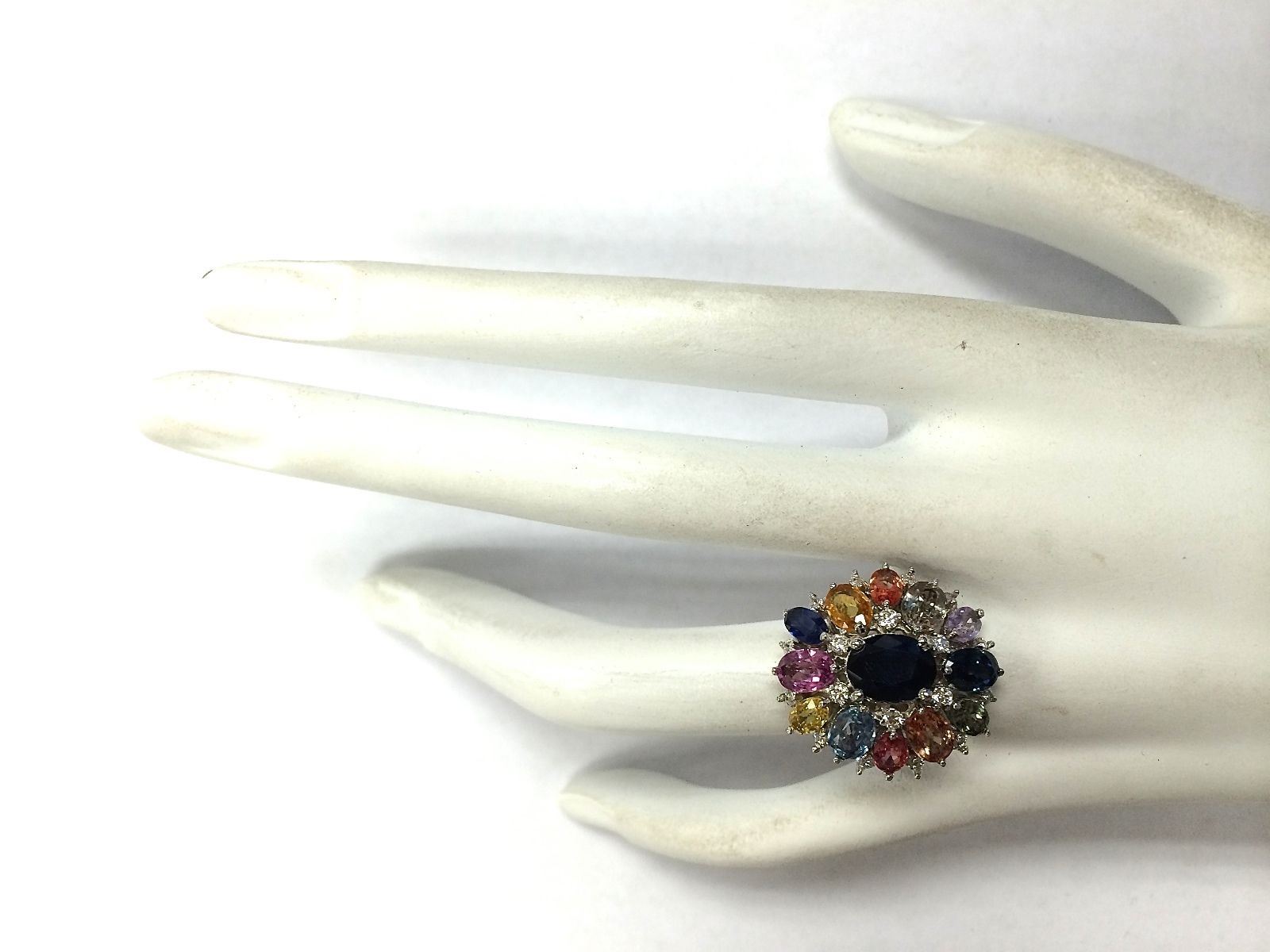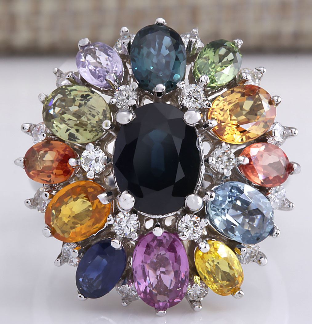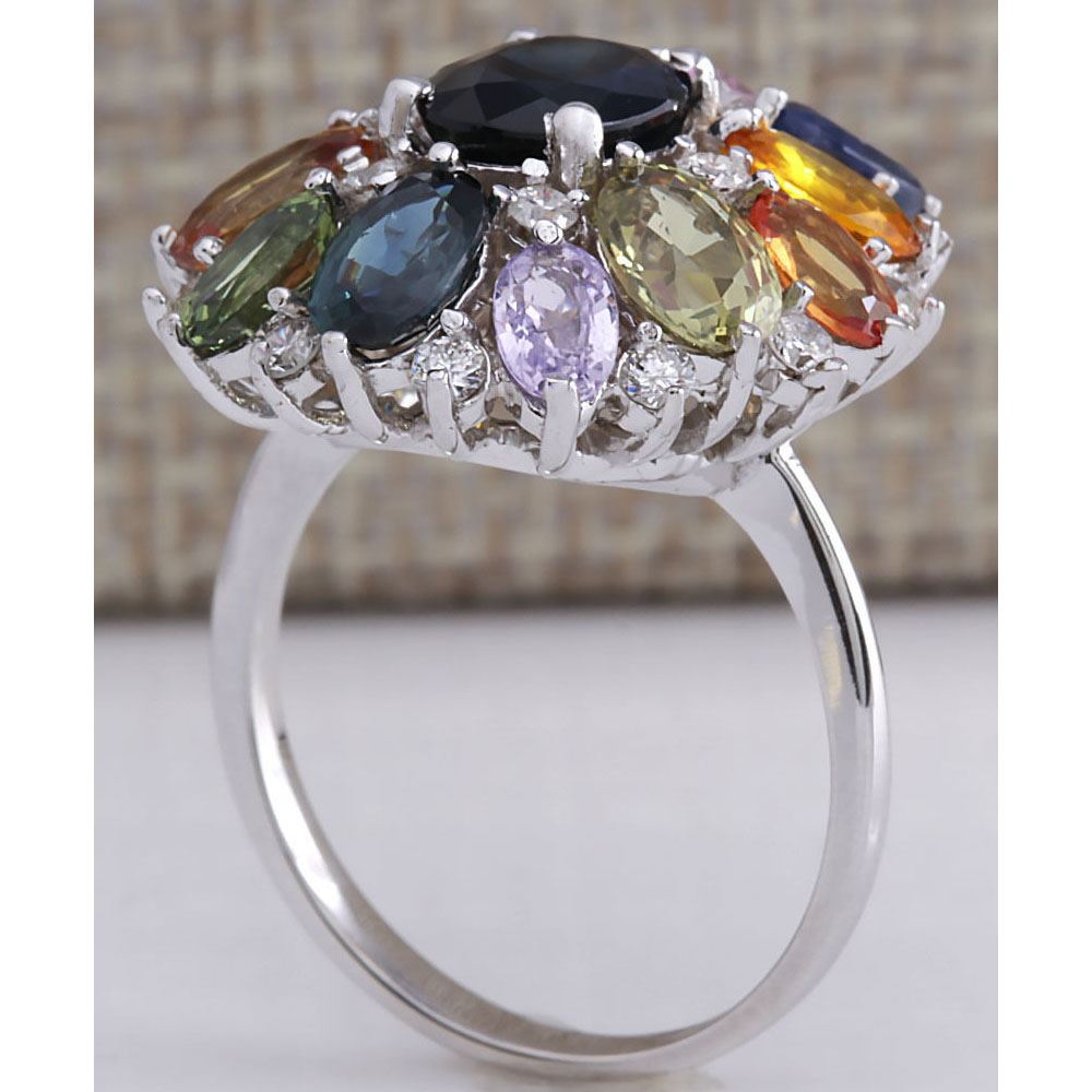 7.68 CTW Natural Ceylon Sapphire And Diamond Ring In14K Solid White Gold