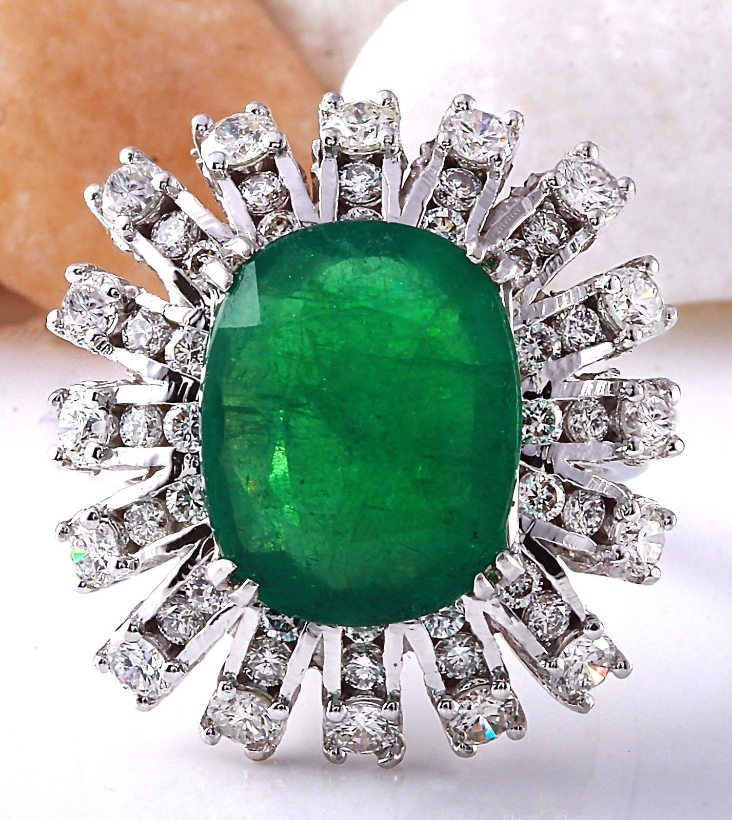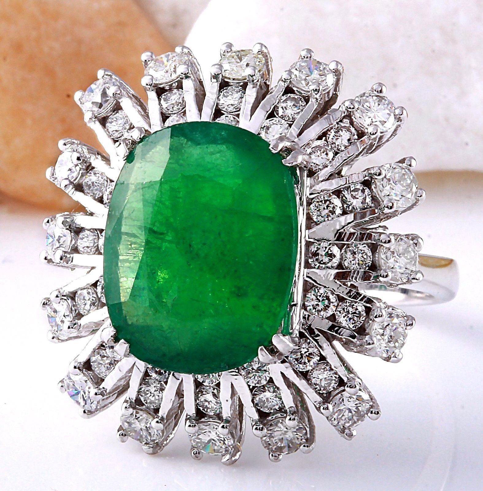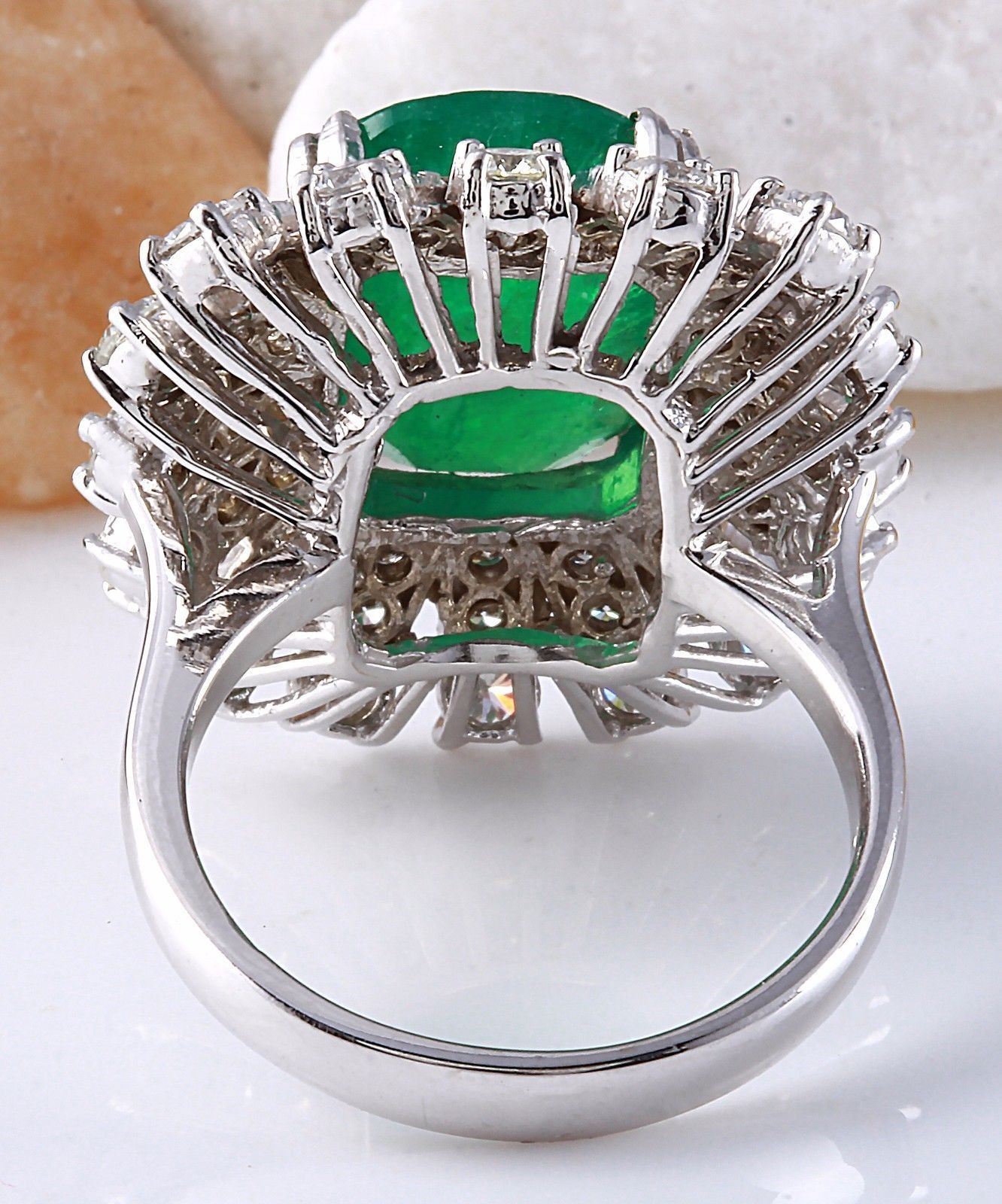7.68 Carat Natural Emerald 18K Solid White Gold Diamond Ring