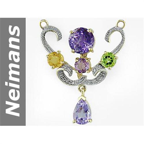 7.68 ct Amethyst, Citrine, Peridot & Pink Spinel & Diamond Pendant 14kt Gold