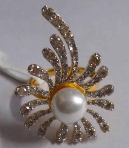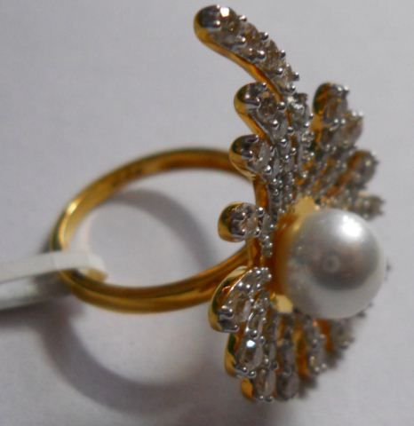 Ring of total weight 7.69g in 14kt 6.596g Gold ,Diamond:1.52 Ctw and Pearl:3.95 Ctw