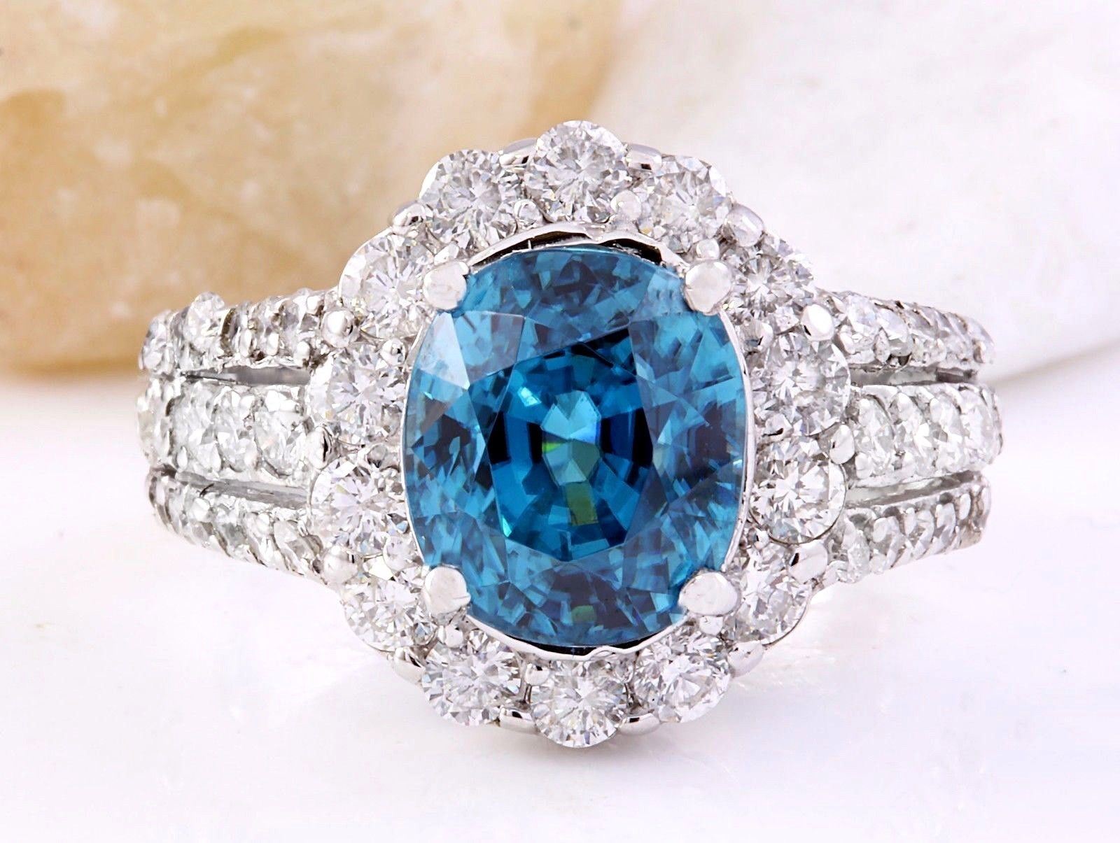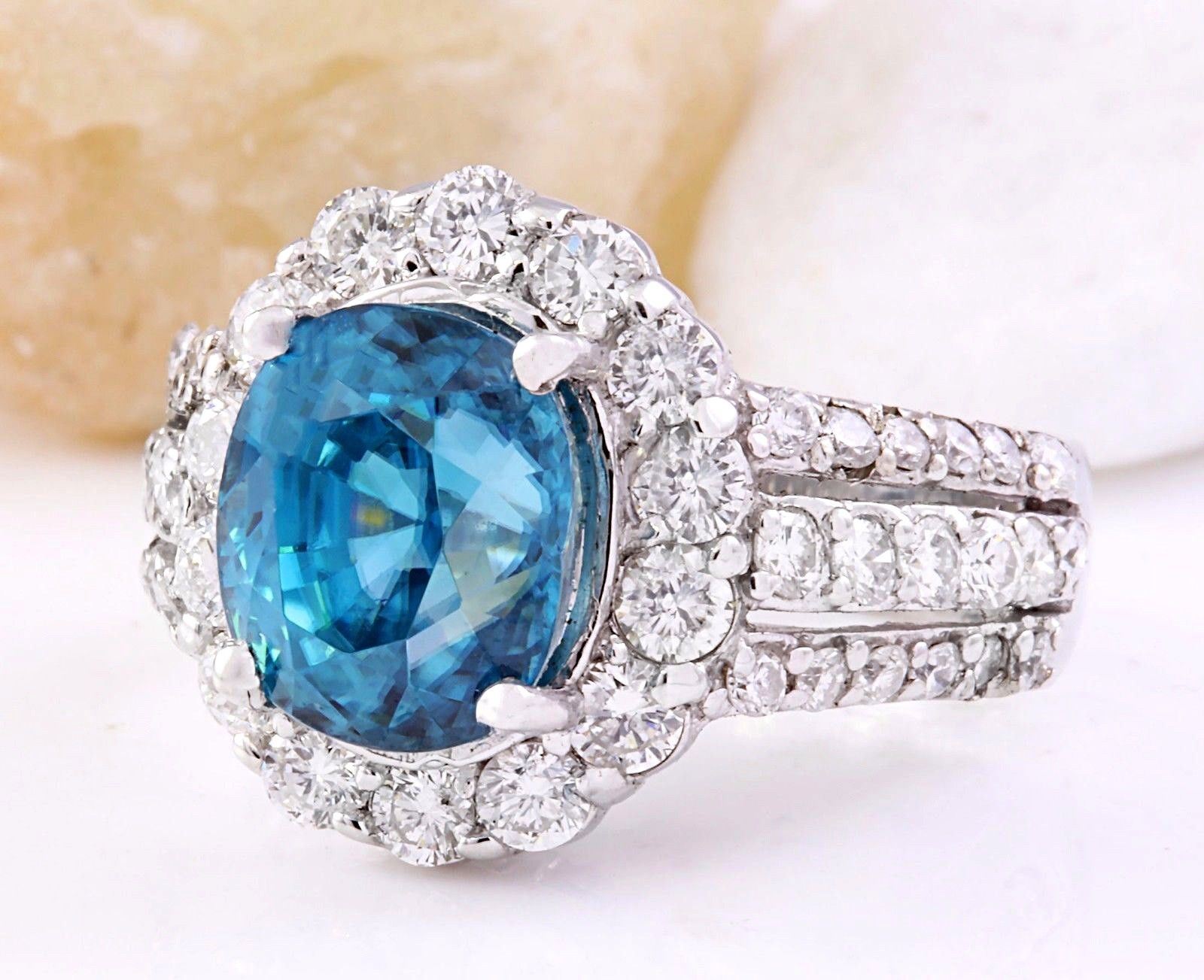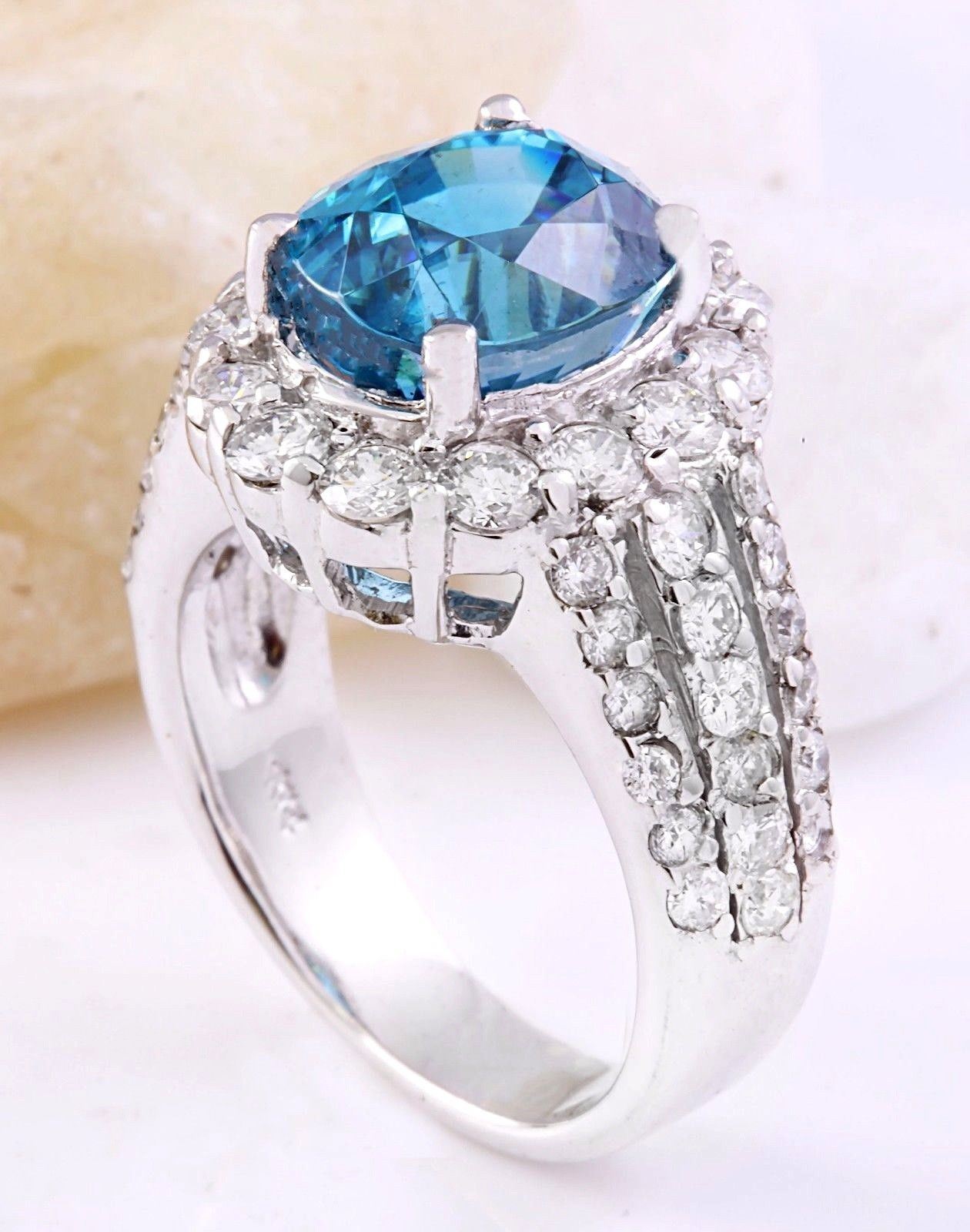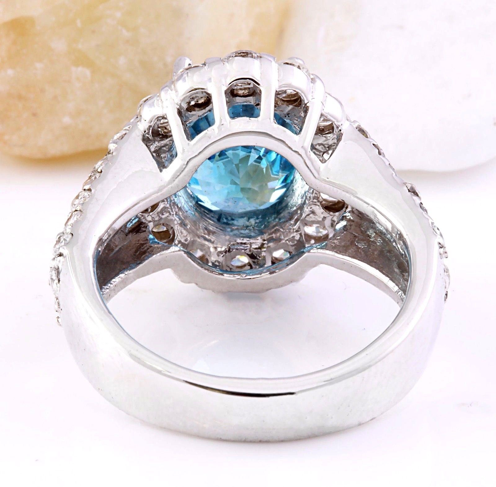 7.70 Carat Natural Zircon 14K Solid White Gold Diamond Ring