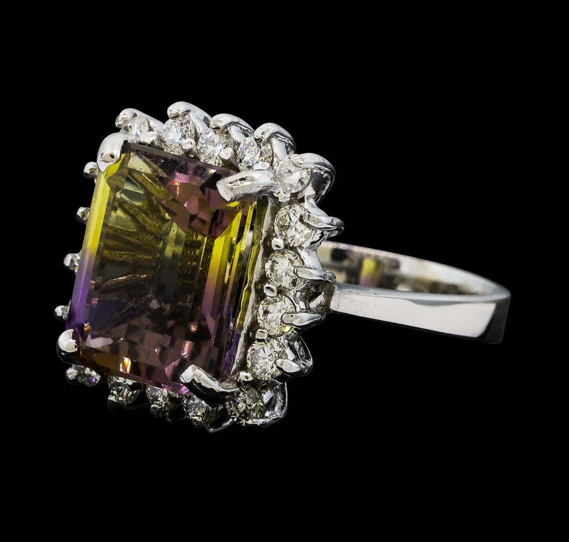 One Morganite and Diamond Ring including: 14KT White Gold weighing a total of 6.00 grams, Morganite weighing a total of 7.70ct, and 58 Diamonds weighing a total of 0.49ctw.