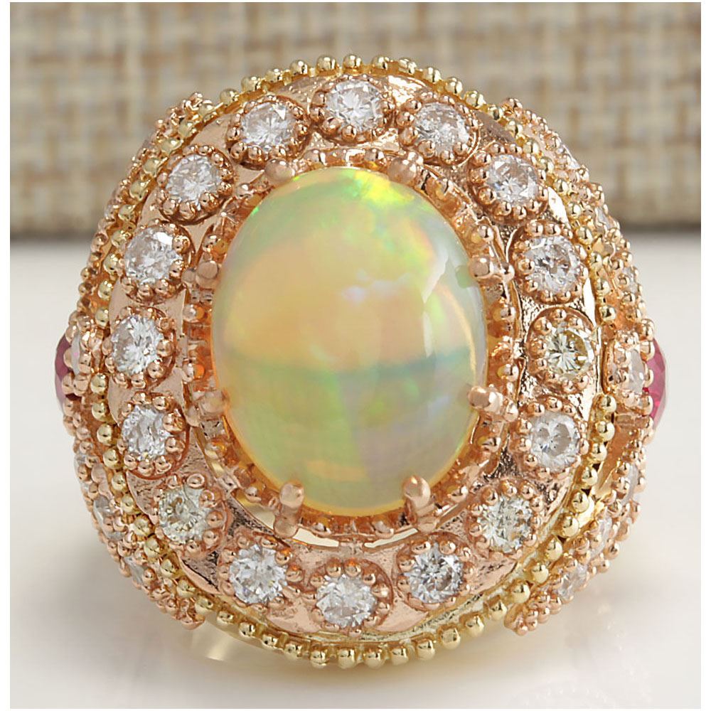 7.71 CTW Natural Opal And Diamond Ring In 14k Solid Yellow Gold