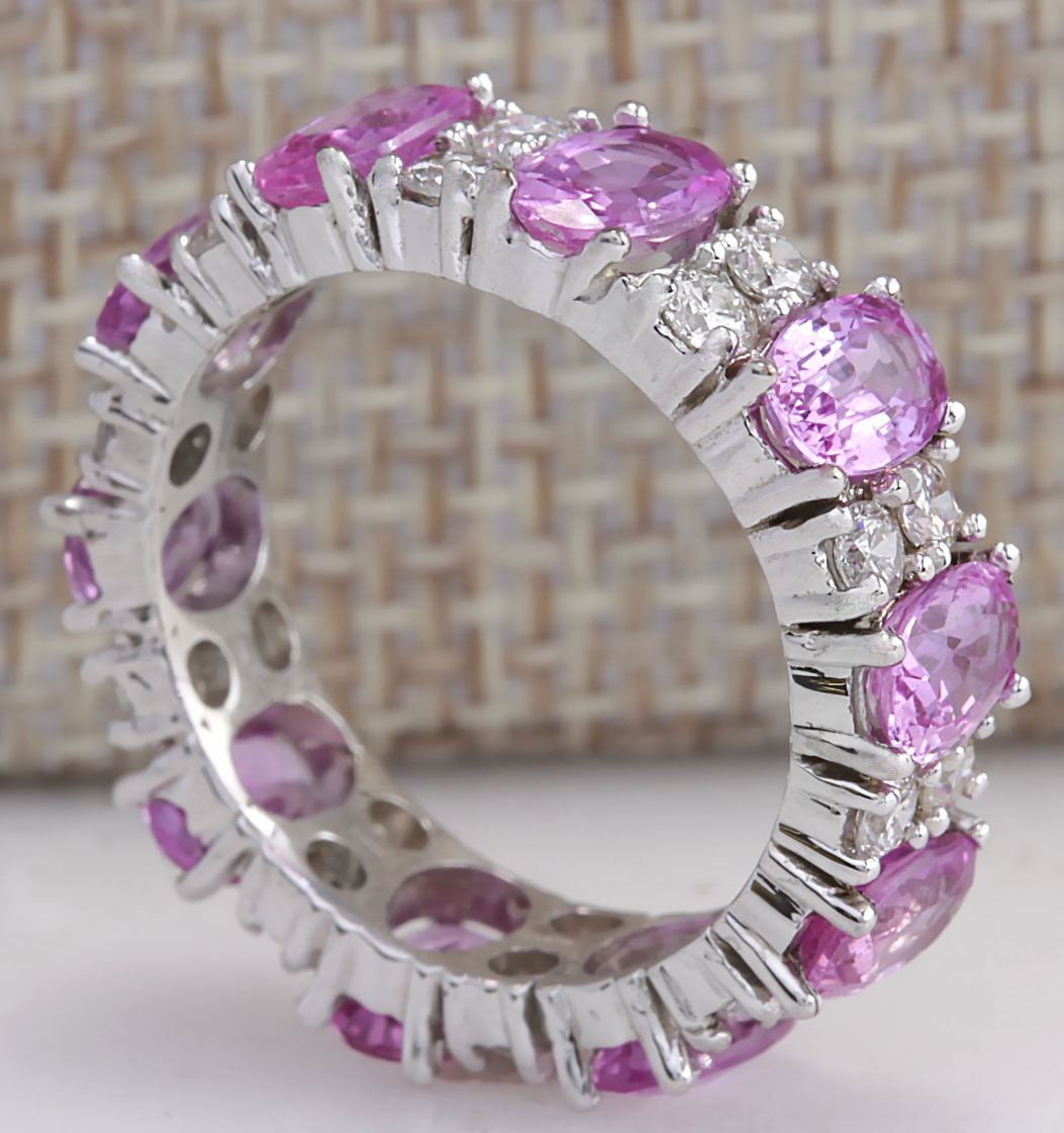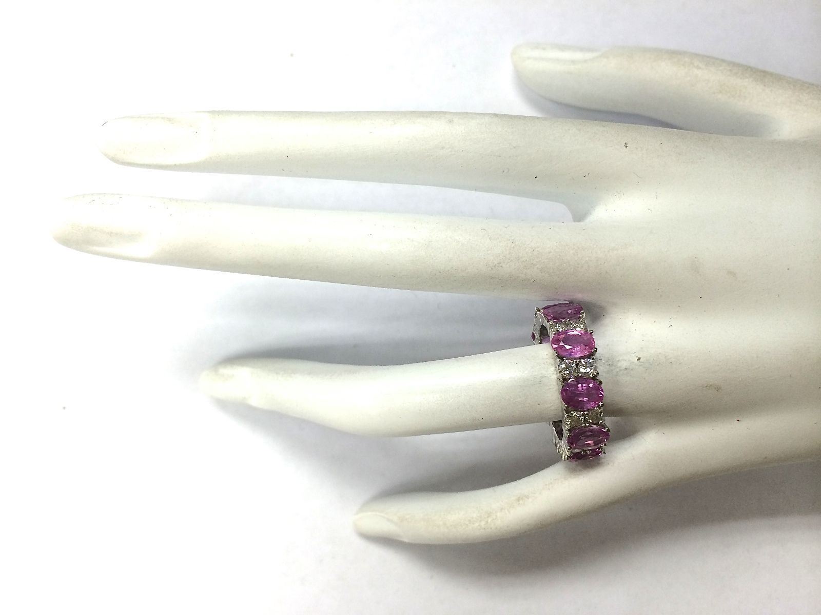 7.71 CTW Natural Pink Ceylon Sapphire Diamond Ring 18K Solid White Gold