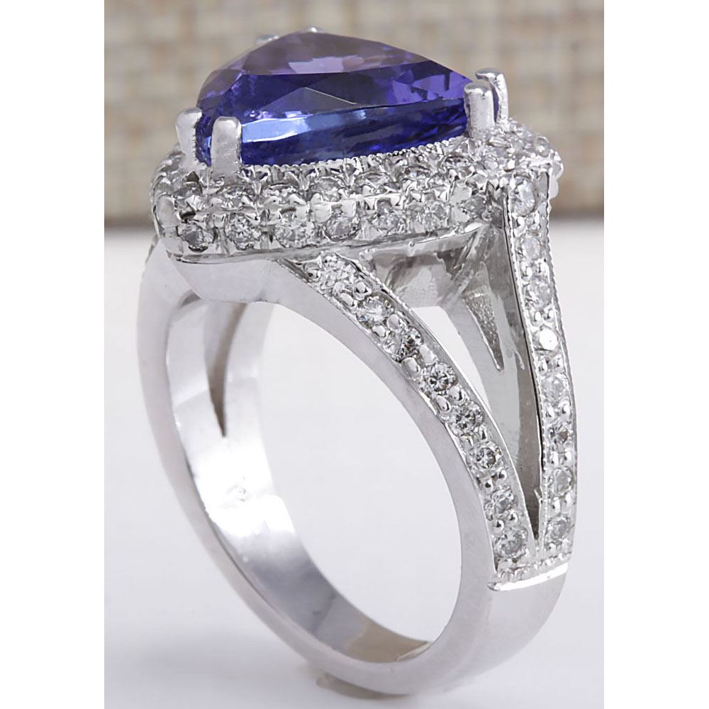7.72 CTW Natural Blue Tanzanite And Diamond Ring 18K Solid White Gold