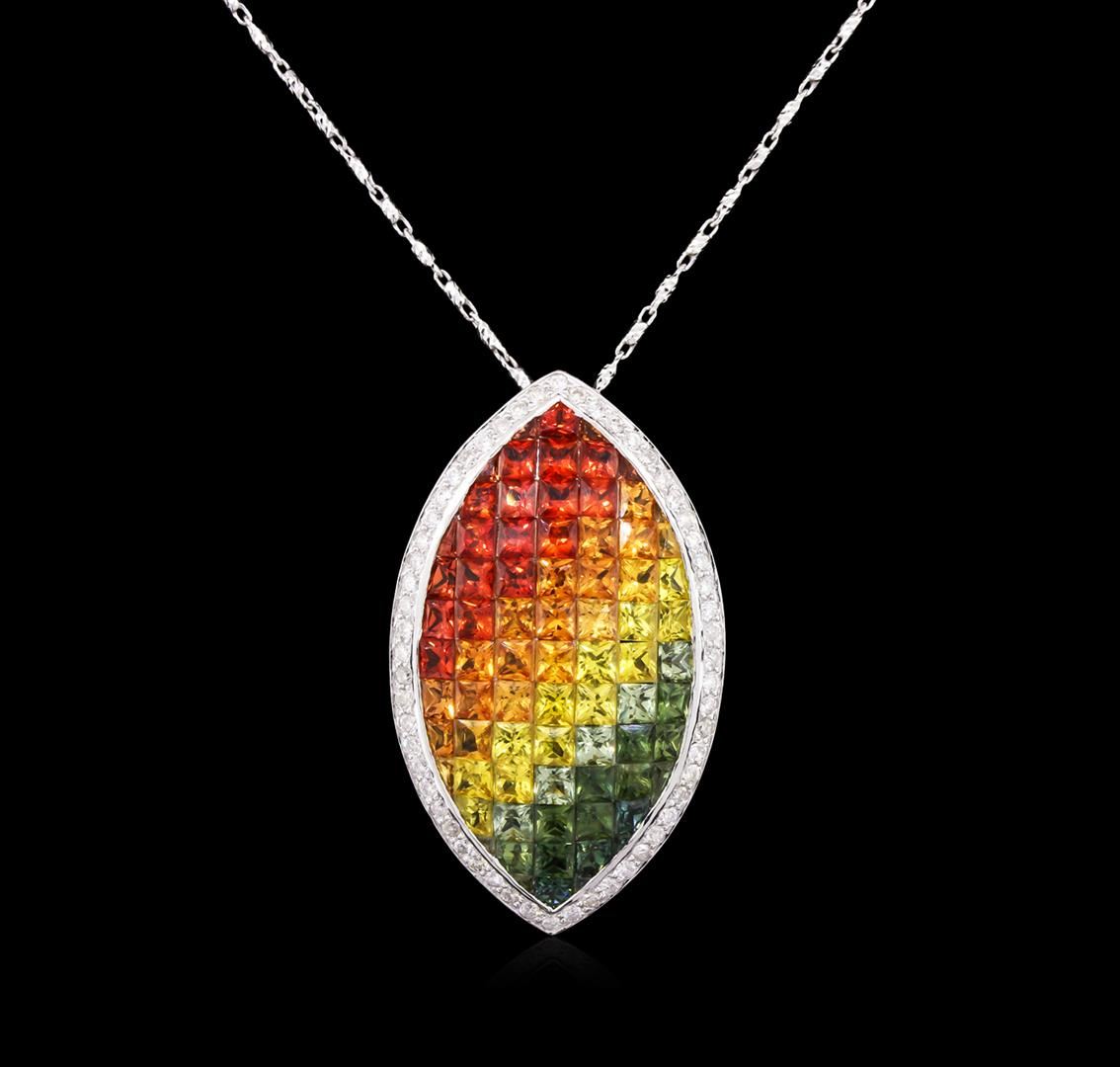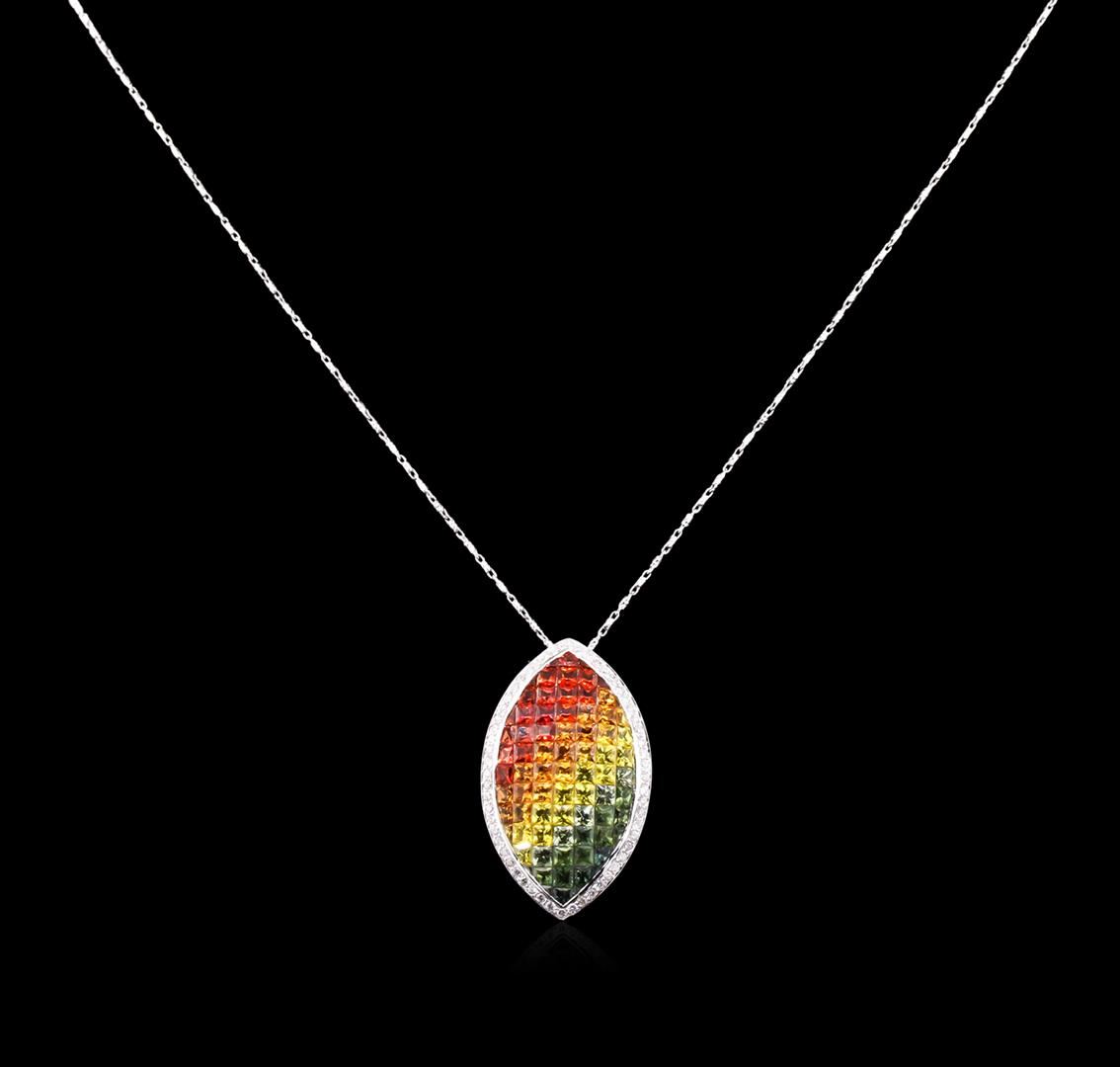 One pendant with chain featuring: 14KT white gold weighing 5.90 grams containing multi-colored sapphires with a total weight of 7.72ct and diamonds with a total weight of 0.37ct.