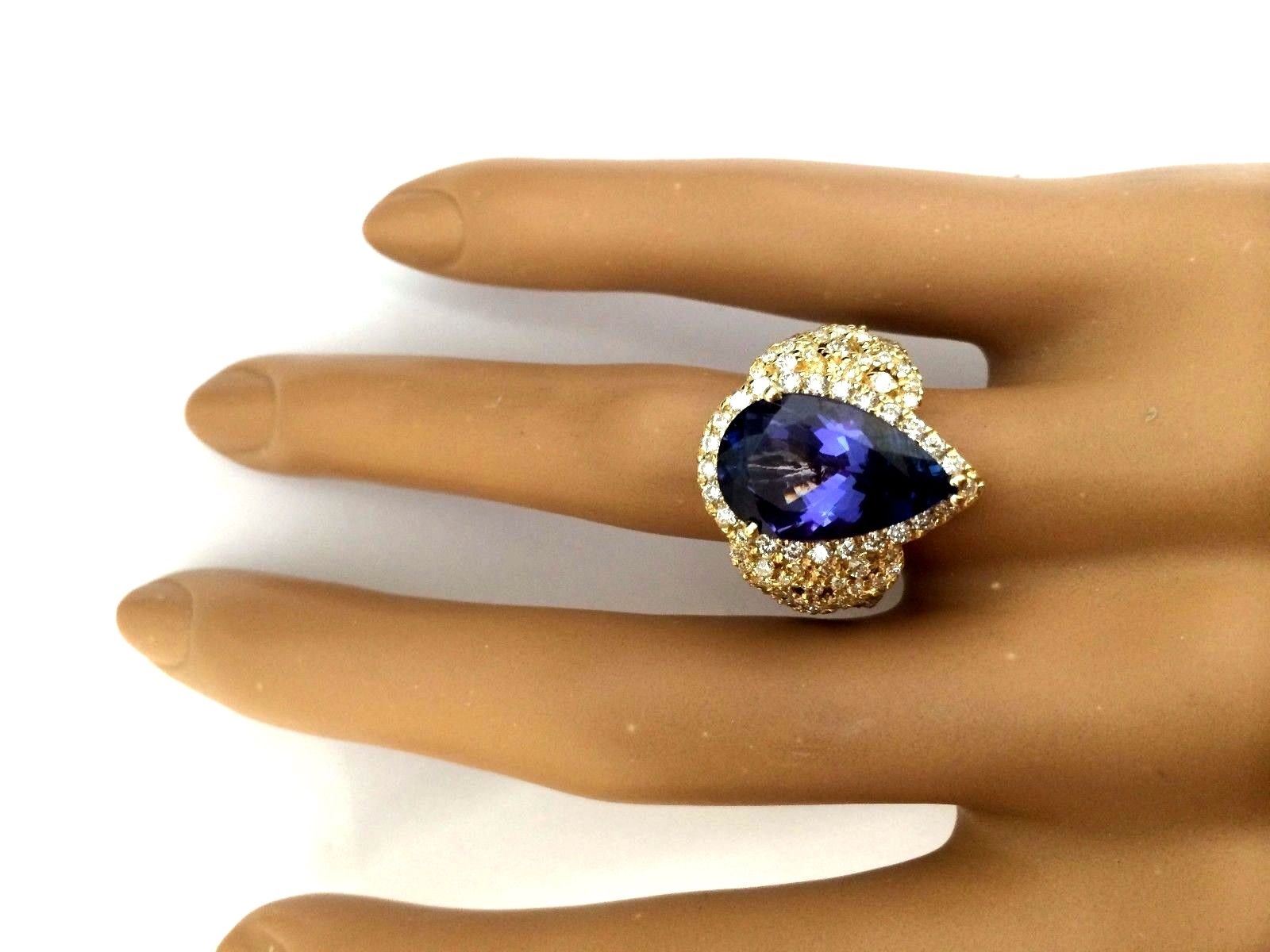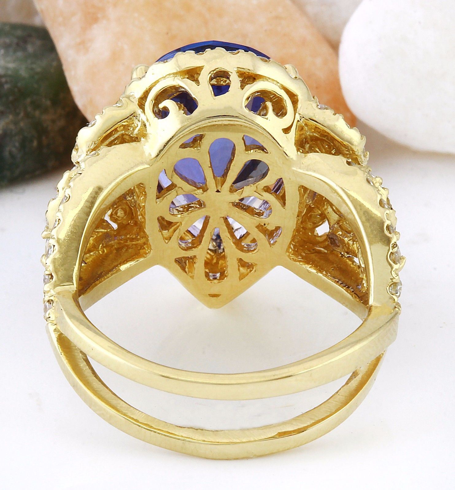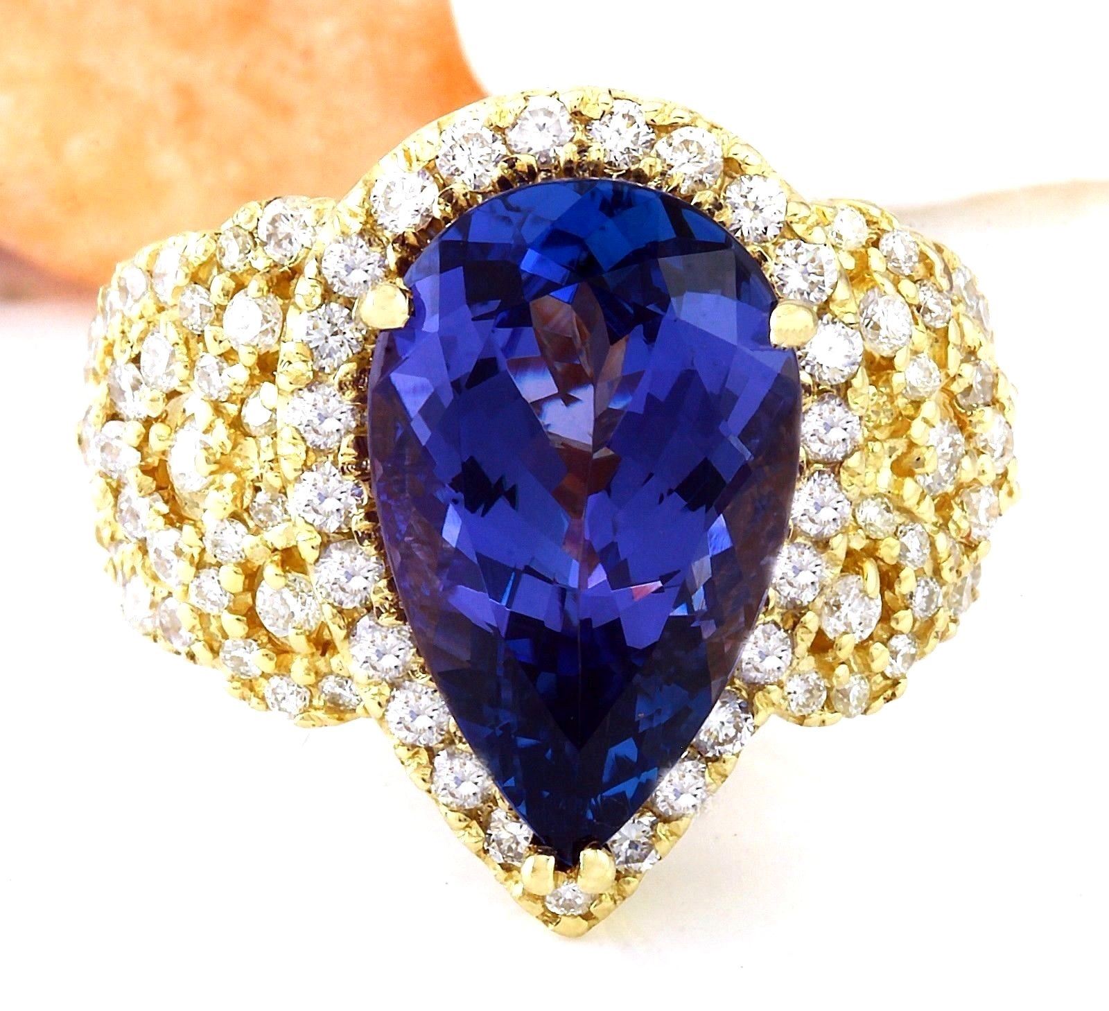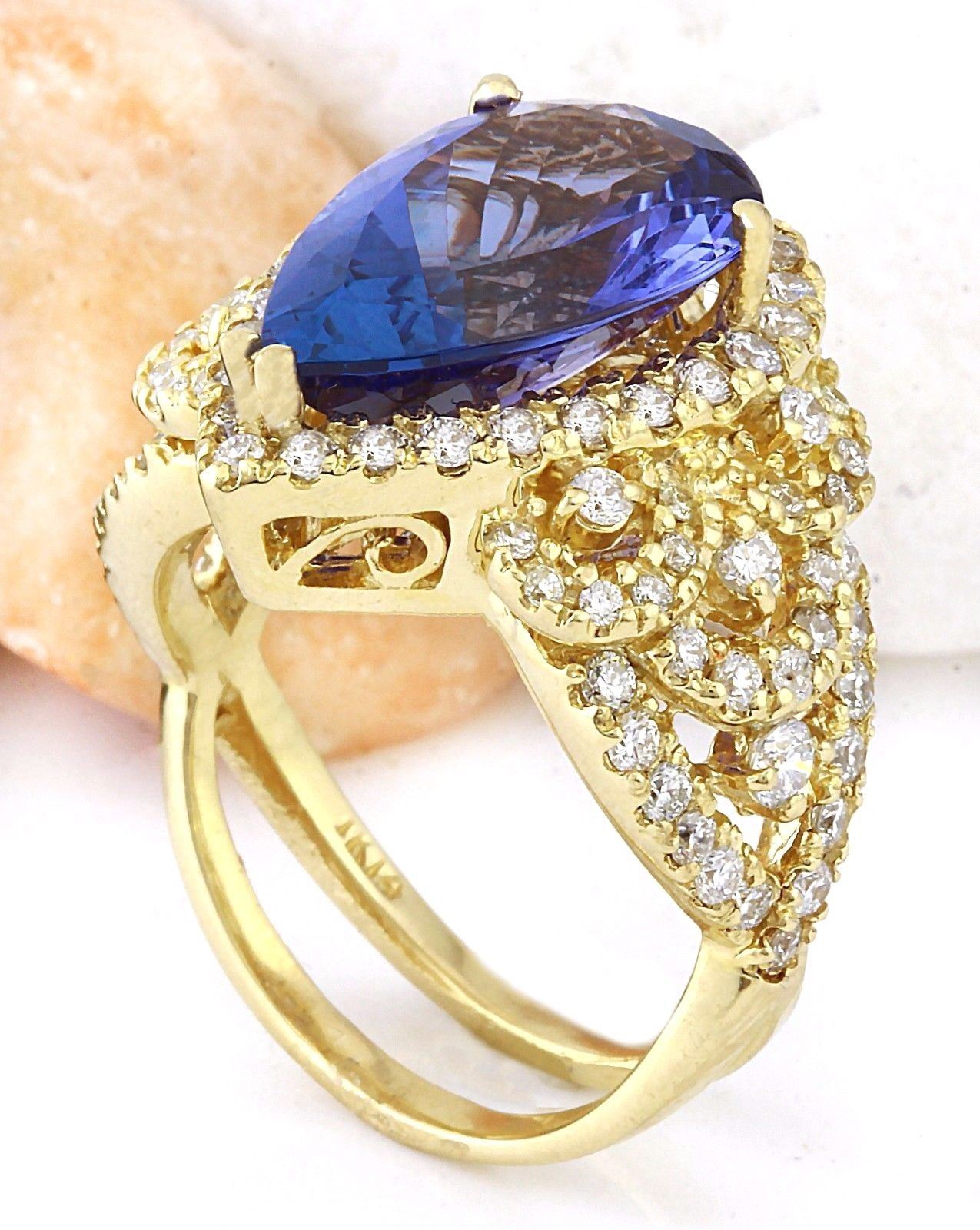 7.73 Carat Natural Tanzanite 14K Solid Yellow Gold Diamond Ring