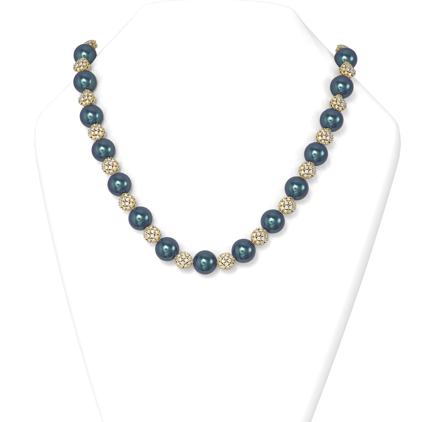 SKU: 55081 ---- 7.73 ctw Diamond & Pearl Necklace 18K Yellow Gold