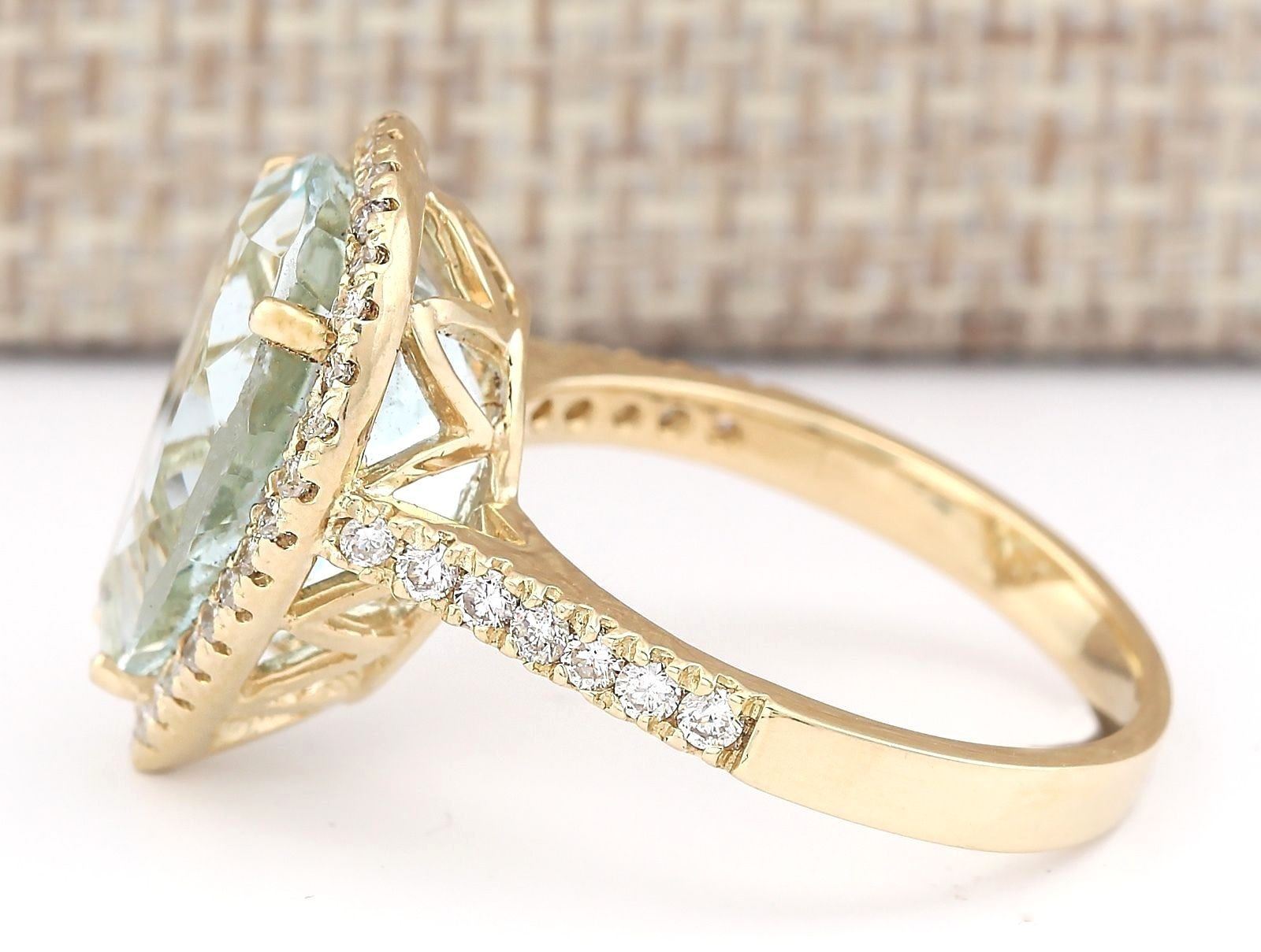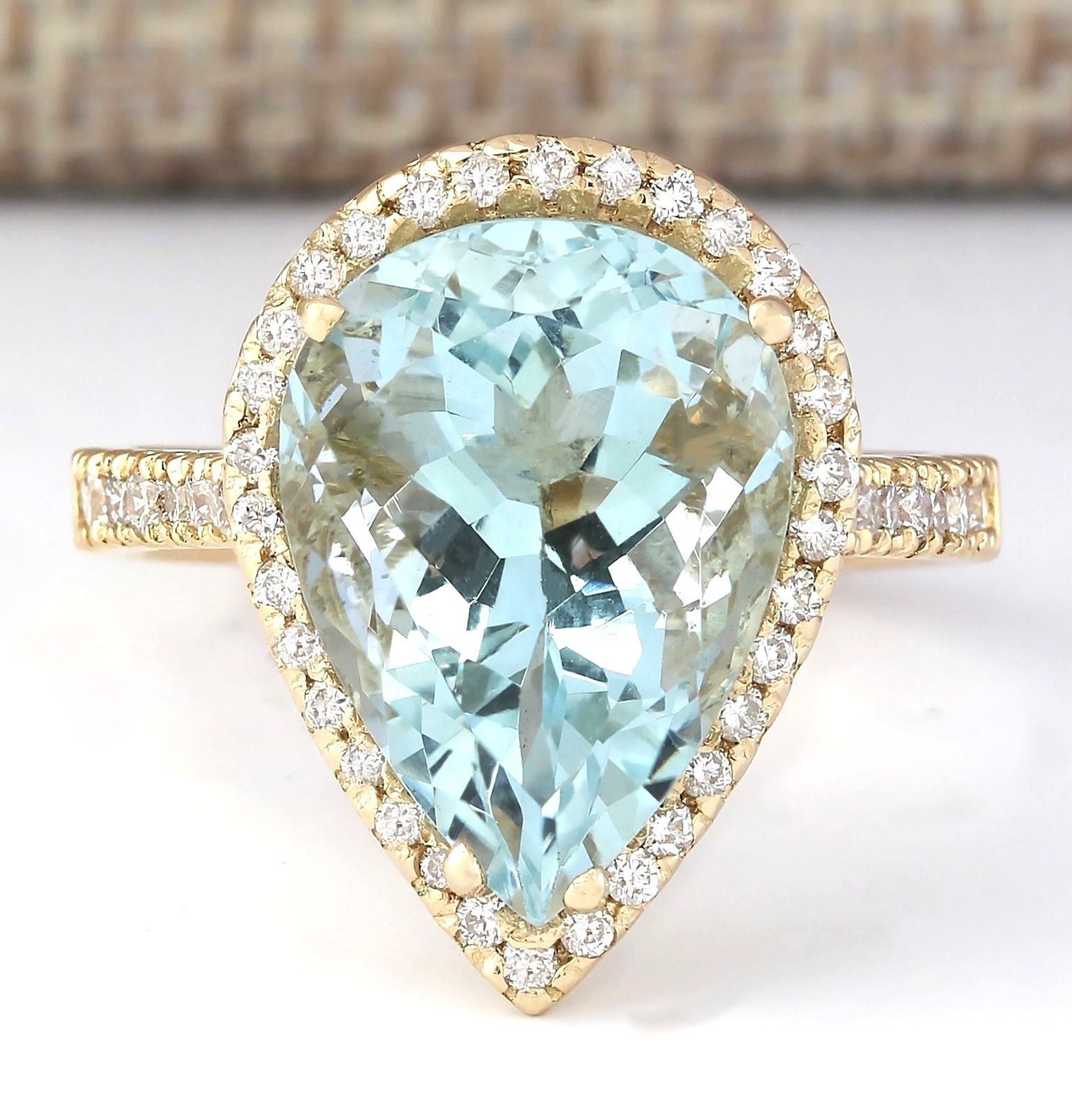 7.74 CTW Natural Blue Aquamarine And Diamond Ring In 14k Yellow Gold