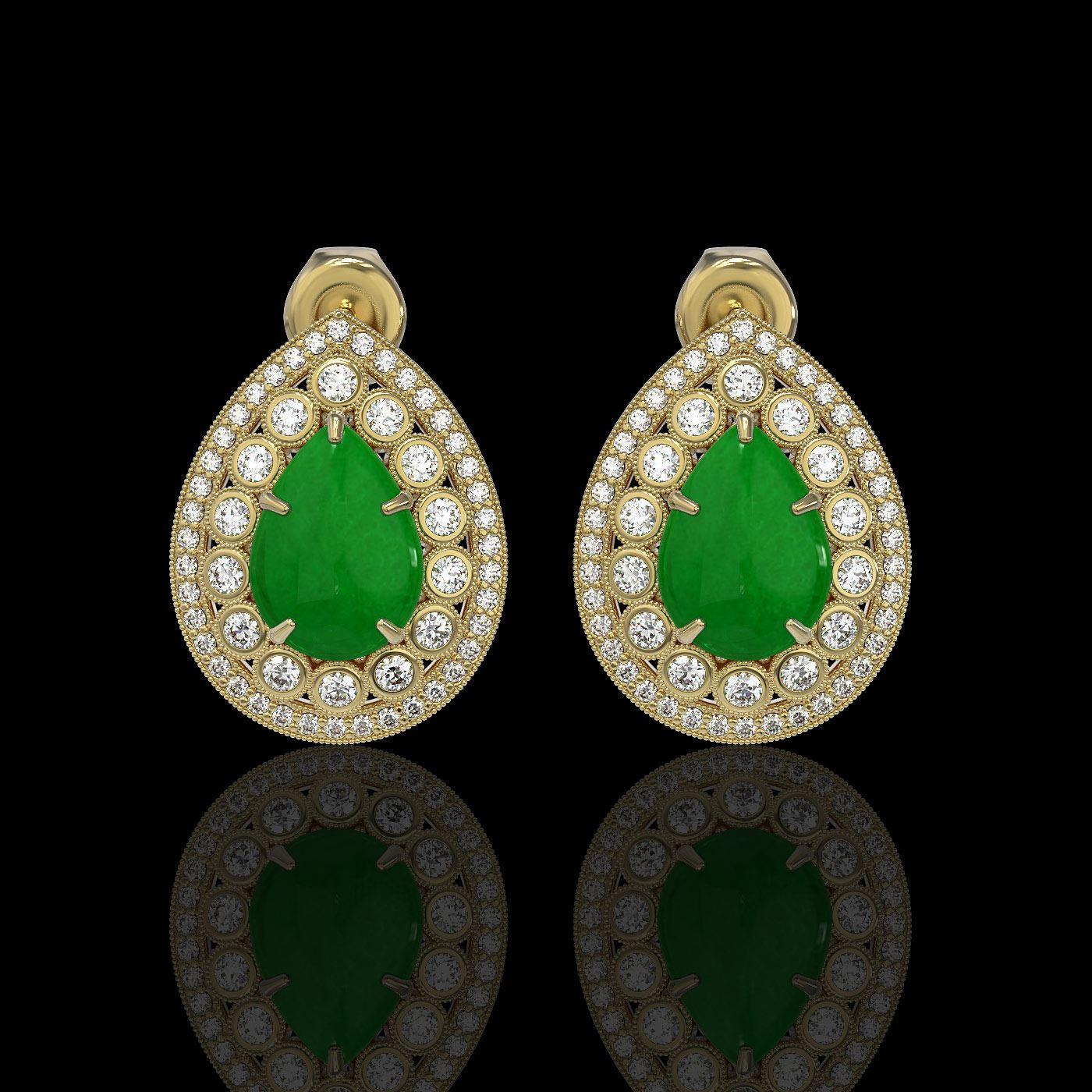 REF-218G2W - SKU: 46157 ---- 7.74 ctw Jade & Diamond Victorian Earrings 14K Yellow Gold