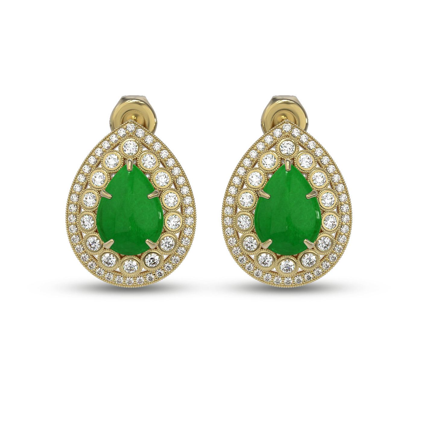 REF-218X2A - SKU: 46157 ---- 7.74 ctw Jade & Diamond Victorian Earrings 14K Yellow Gold