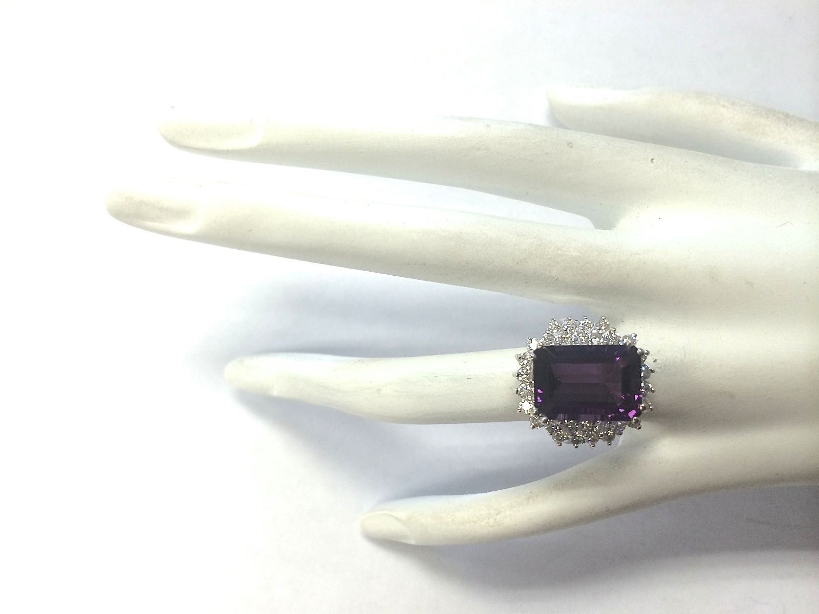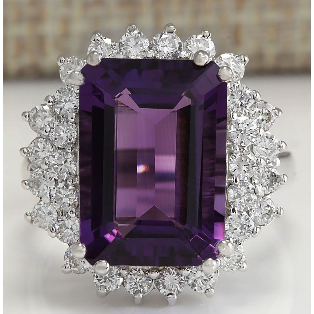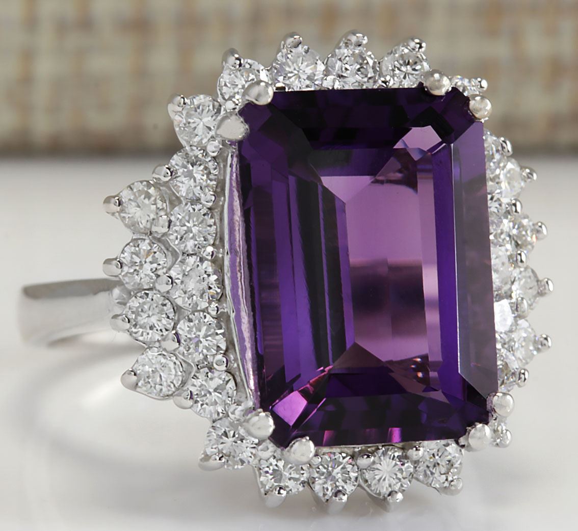 7.75 CTW Natural Amethyst And Diamond Ring In 18K Solid White Gold