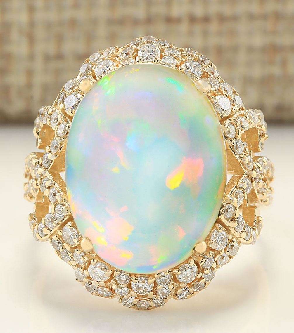 7.75 CTW Natural Opal And Diamond Ring In 18K Yellow Gold