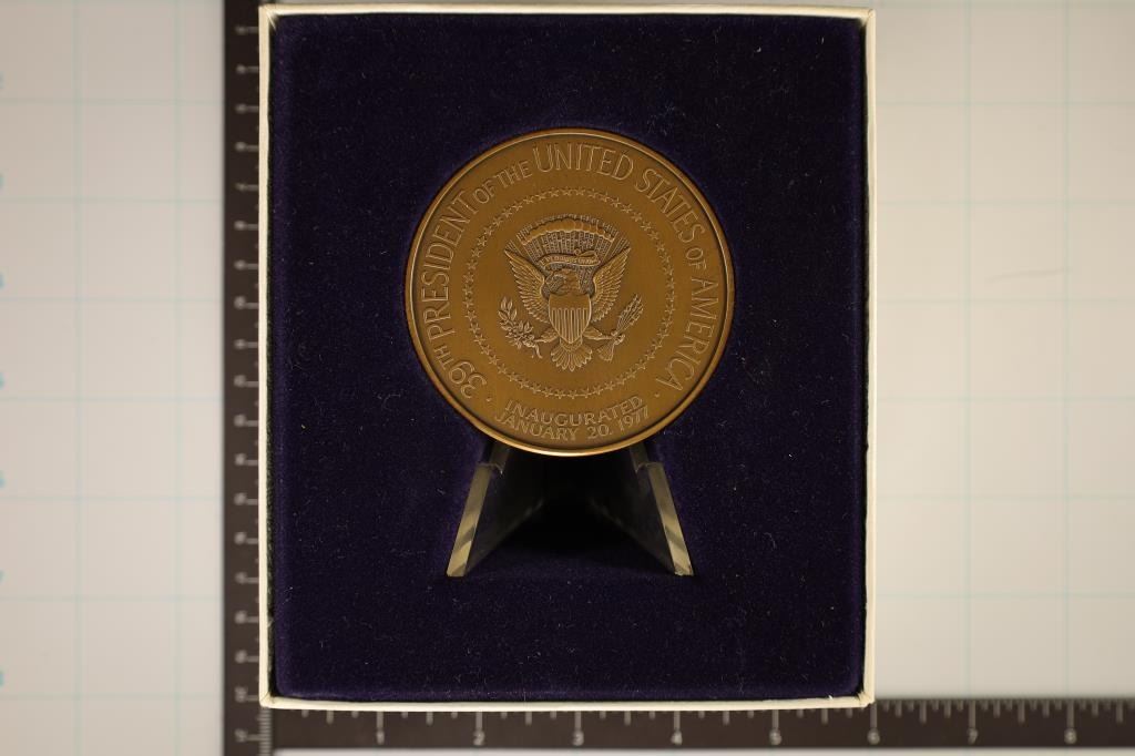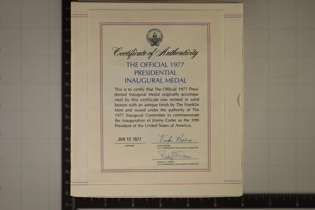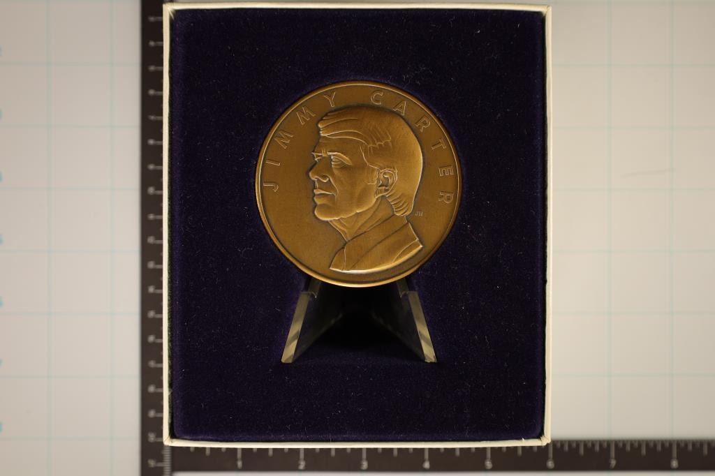 JIMMY CARTER, IN ORIGINAL MINT PACKAGING BY THE FRANKLIN MINT, WITH STAND AND PAPERWORK.