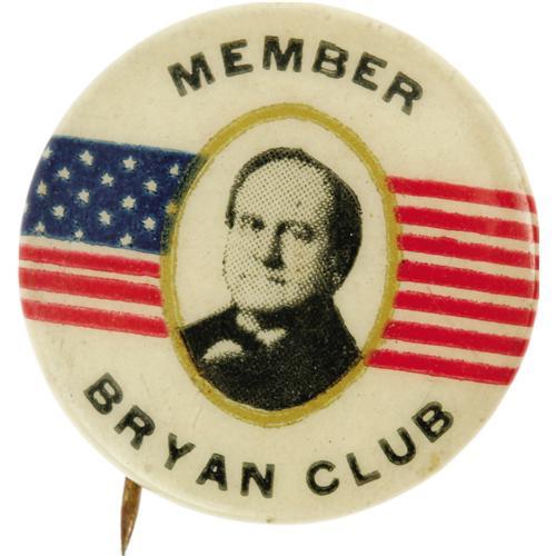 <B>One of the Nicest 7/8" 1908 William Jennings Bryan Button Designs.</B></I> Great color, a strikingly bold design, and quite rare as well. Choice condition. <I>From the Norman Loewenstern Collection.</B></I>