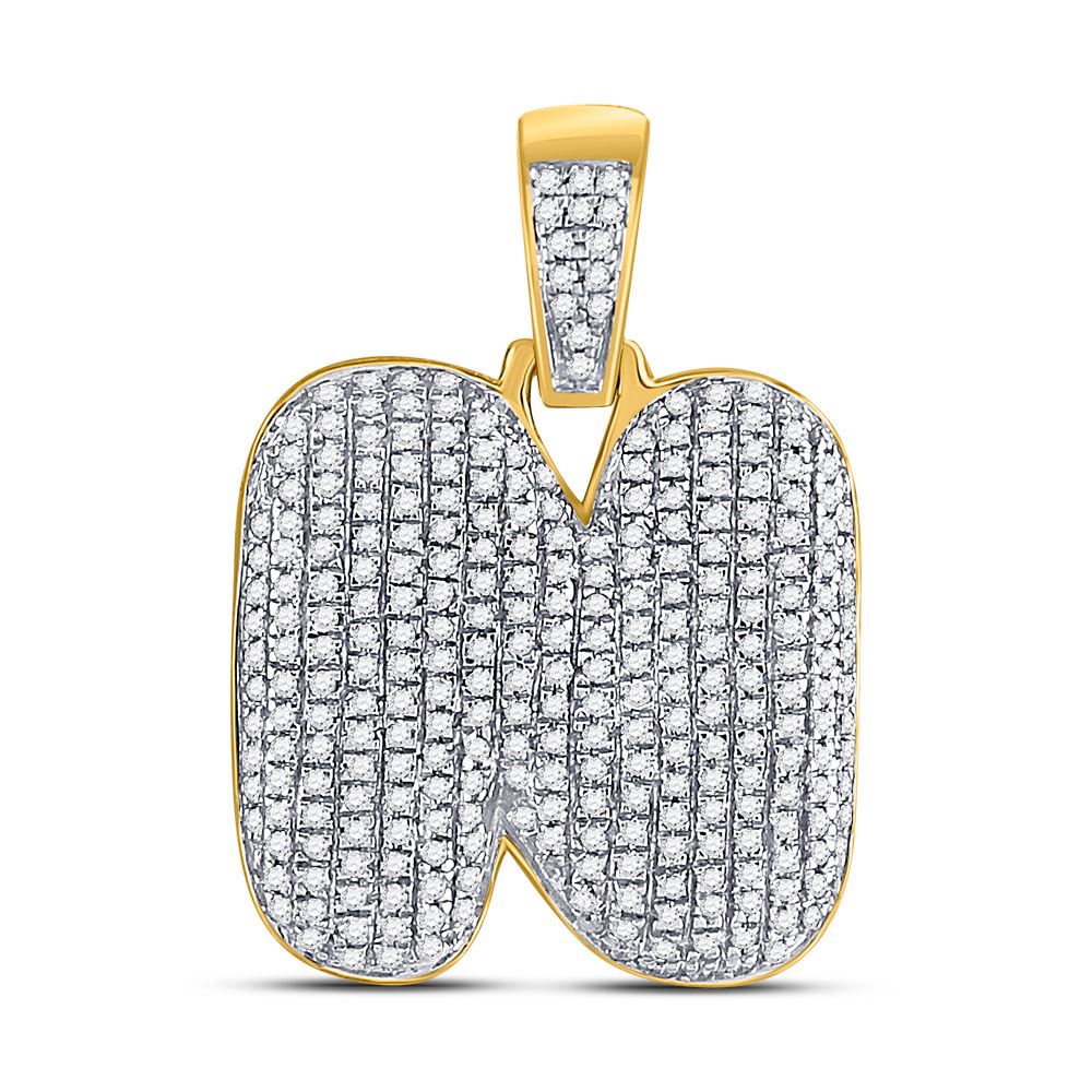 REF-43H6R - 7/8 CTW Mens Round Diamond Bubble N Letter Charm Pendant 10kt Yellow Gold - REF-43H6R