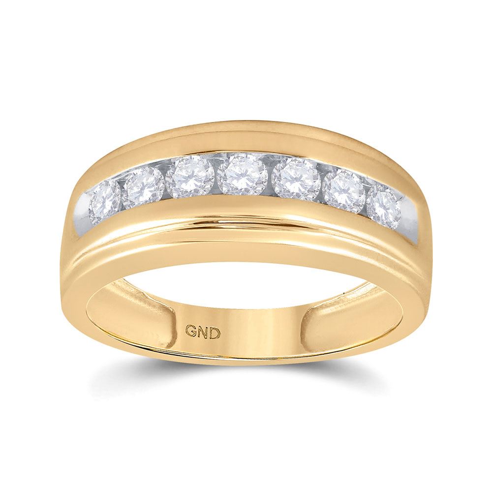 10kt Yellow Gold Mens Round Diamond Wedding Channel-Set Band Ring 7/8 Cttw