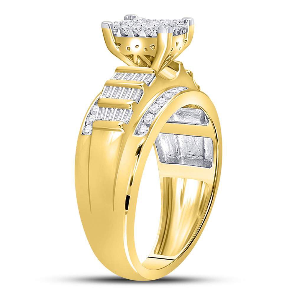 10kt Yellow Gold Womens Princess Diamond Cluster Bridal Wedding Engagement Ring 7/8 Cttw