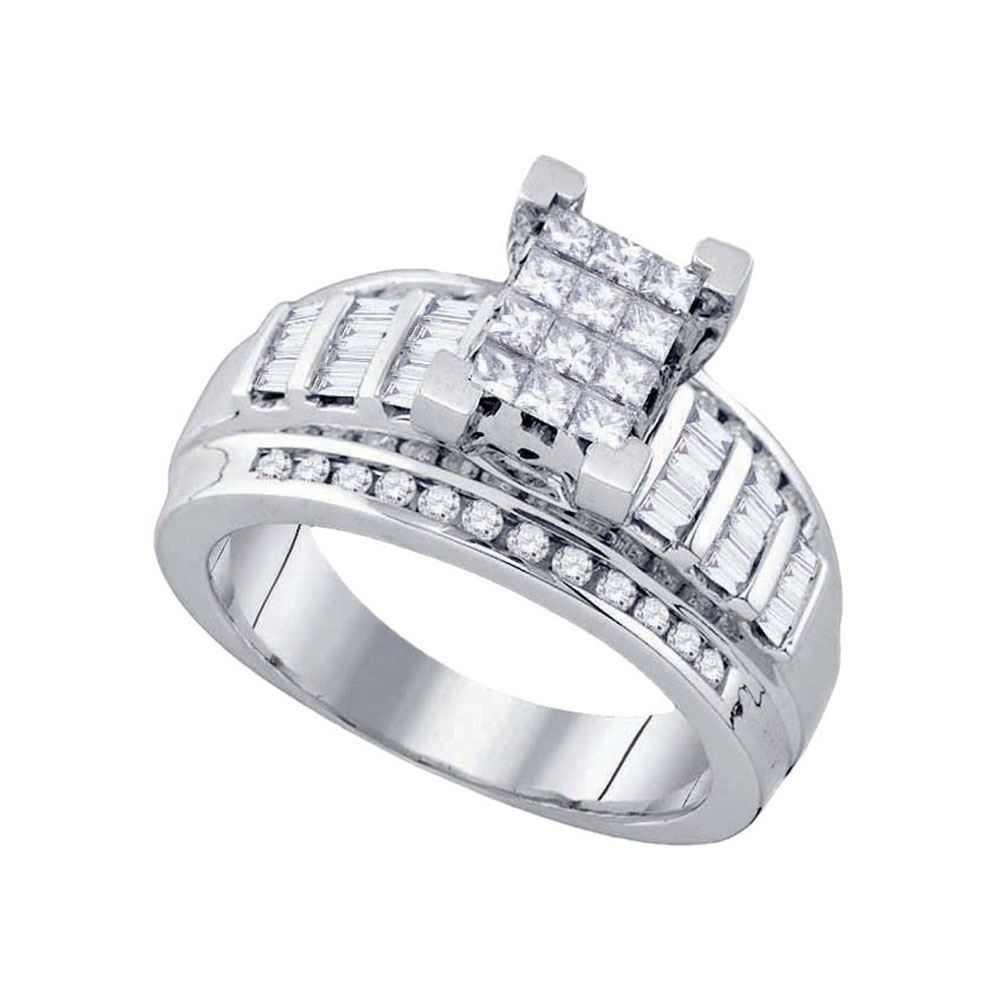 REF-83W9H - 7/8 CTW Princess Diamond Cluster Bridal Wedding Engagement Ring 14kt White Gold - REF-83W9H