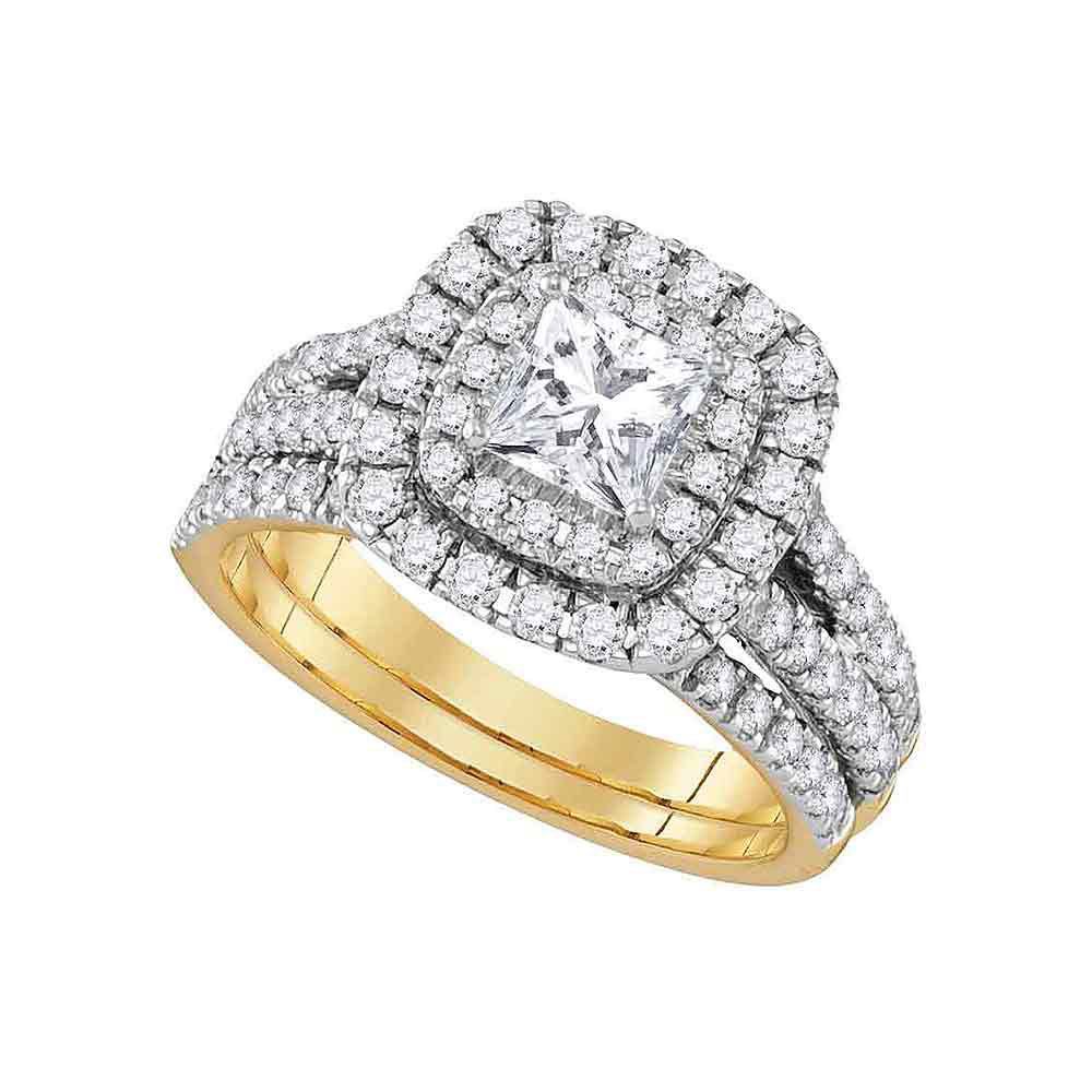 14kt Yellow Gold Womens Princess Diamond Solitaire Bridal Wedding Engagement Ring Band Set 7/8 Cttw