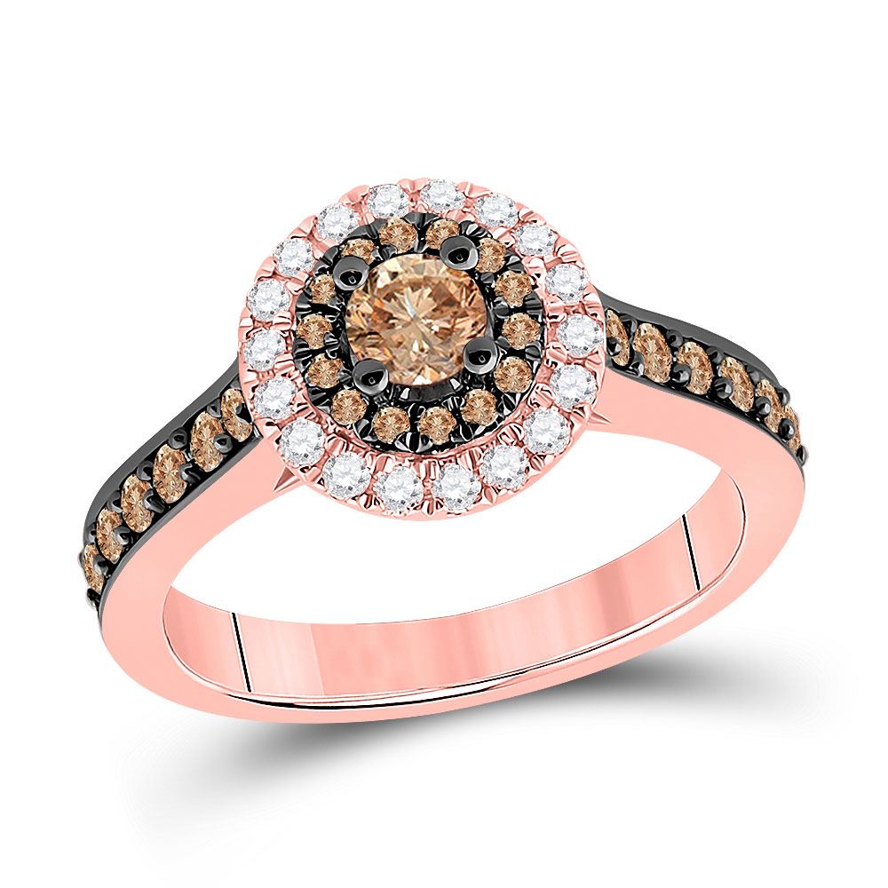 REF-81V7Y - 7/8 CTW Round Brown Diamond Solitaire Bridal Wedding Engagement Ring 14kt Rose Gold - REF-81V7Y