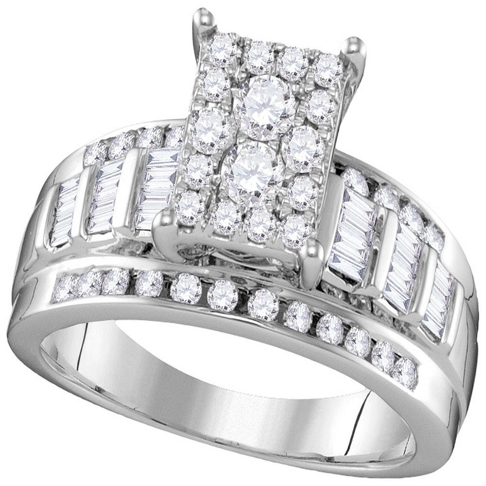 10kt White Gold Womens Round Diamond Rectangle Cluster Bridal Wedding Engagement Ring 7/8 Cttw - Size 10