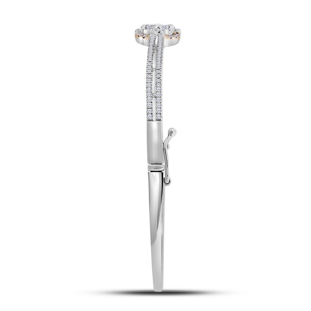 14kt White Gold Womens Round Diamond Cluster Circle Bangle Bracelet 7/8 Cttw