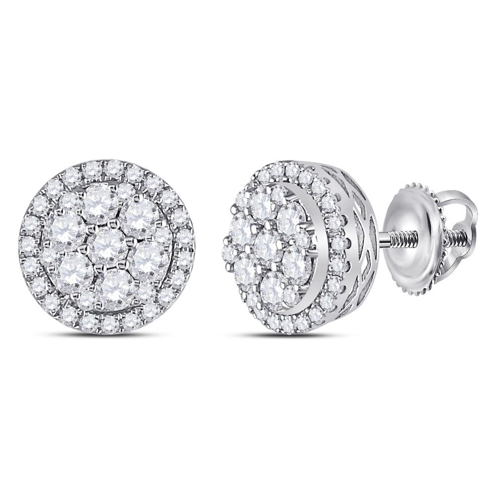 REF-65F9M ---- 7/8 CTW Round Diamond Flower Halo Cluster Earrings 14kt White Gold