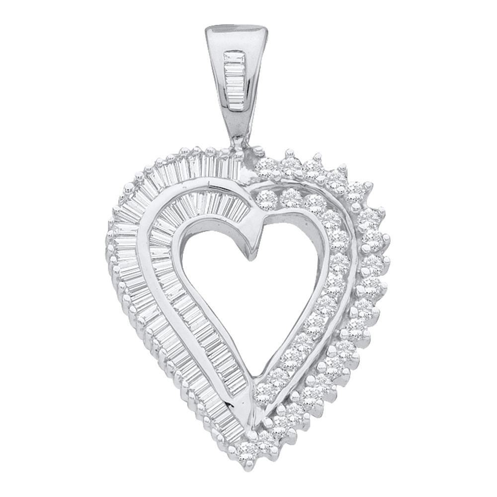 14kt White Gold Womens Round Diamond Heart Pendant 7/8 Cttw