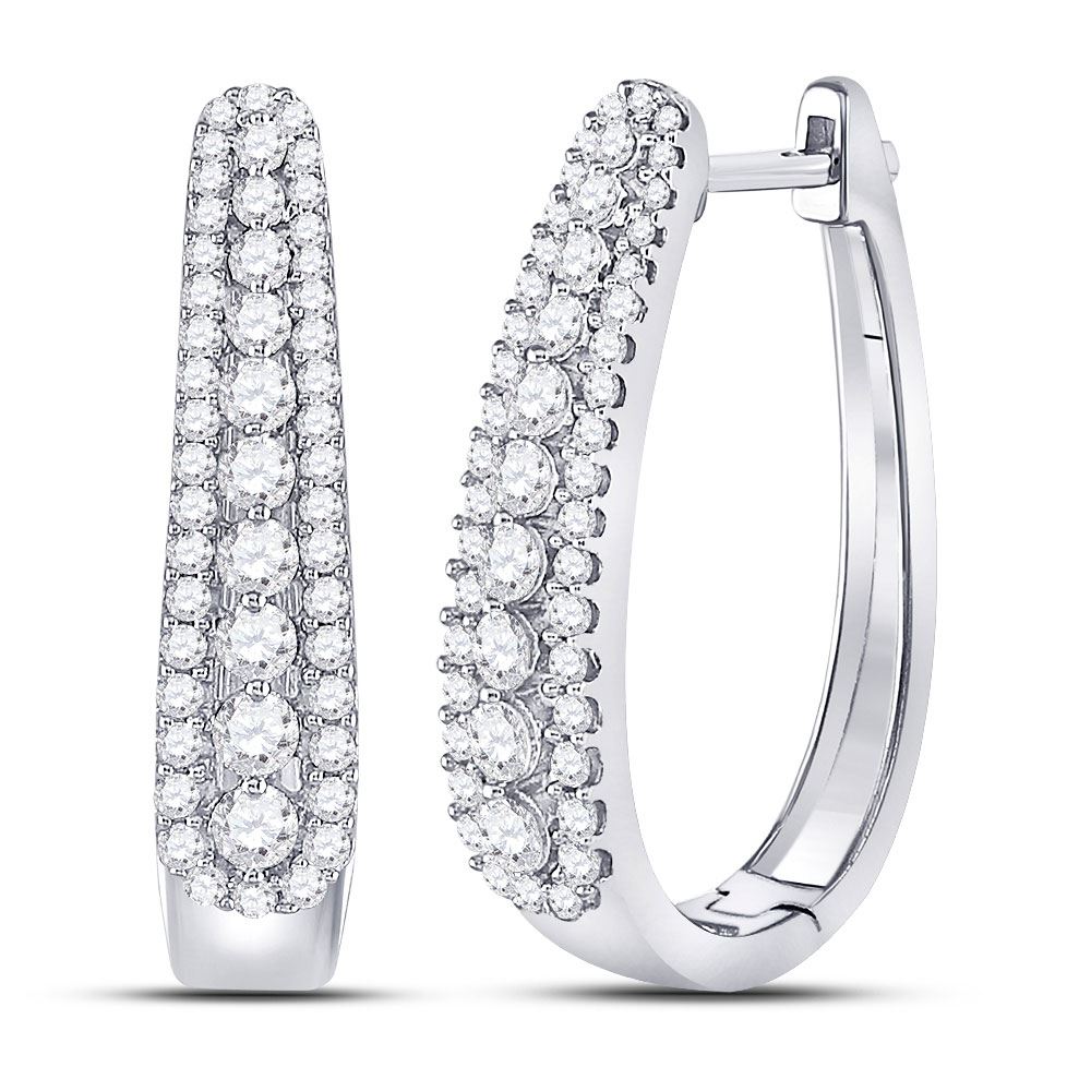10kt White Gold Womens Round Diamond Oblong Hoop Earrings 7/8 Cttw