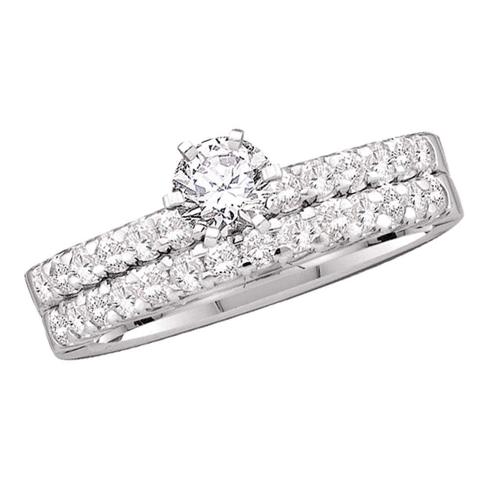 14kt White Gold Womens Round Diamond Solitaire Bridal Wedding Engagement Ring Band Set 7/8 Cttw